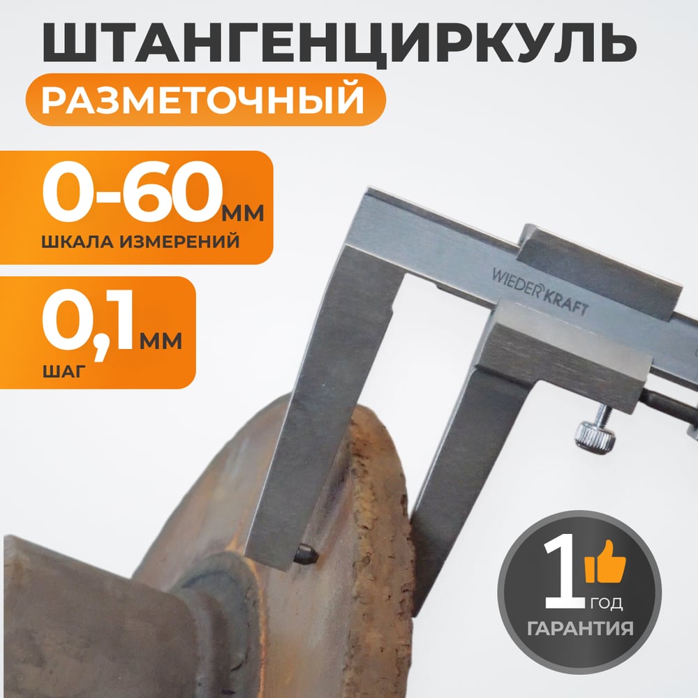 Штангенциркуль для тормозных дисков WIEDERKRAFT 0-60 мм, 0.1 мм, губки 55 мм WDK-DB601