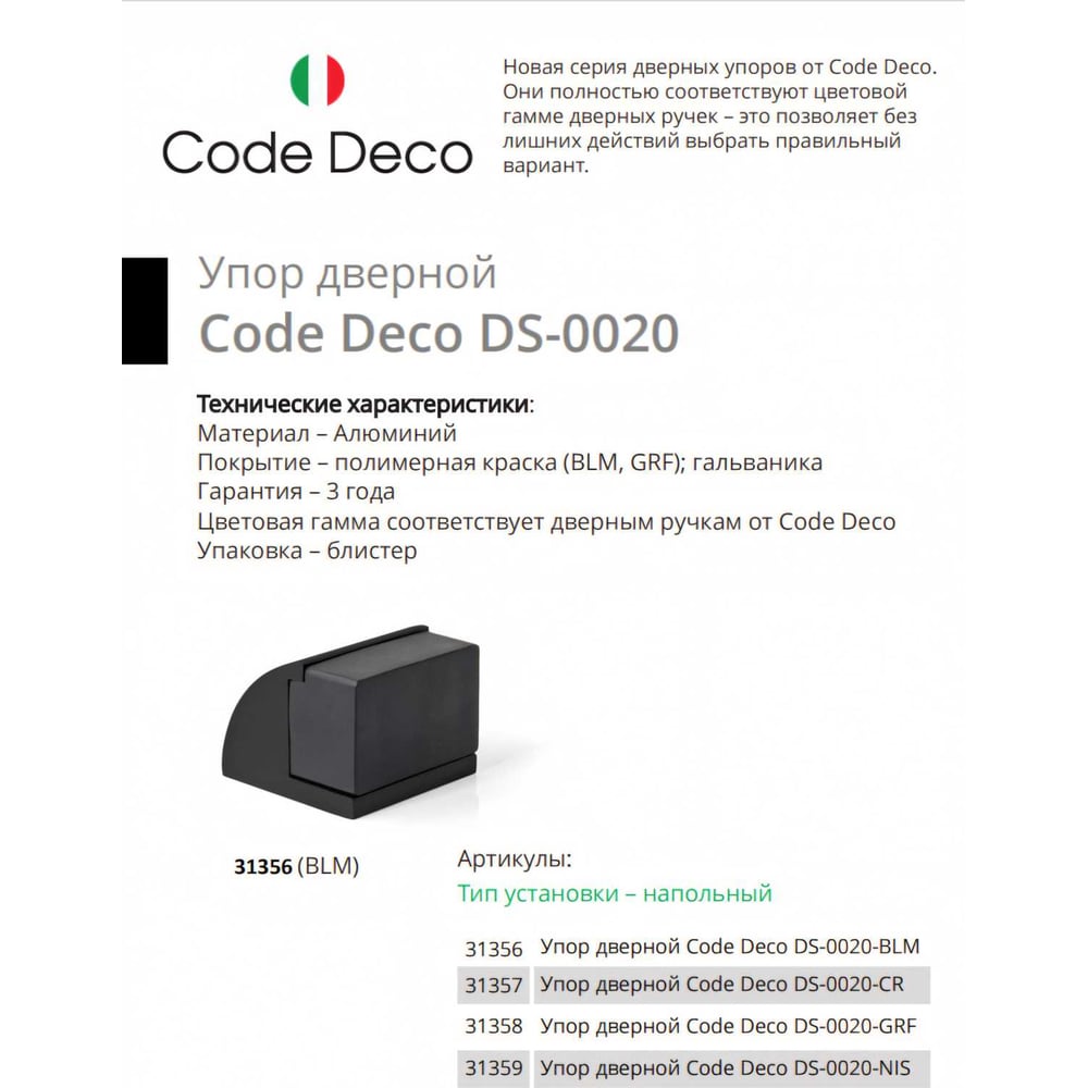 Упор дверной Code Deco DS-0020-BLM 31356