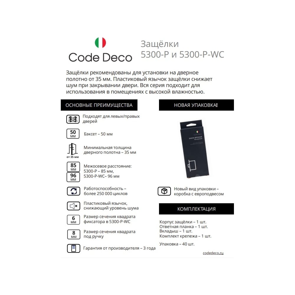 Врезная защелка Code Deco 5300-P-WC-CR 31300