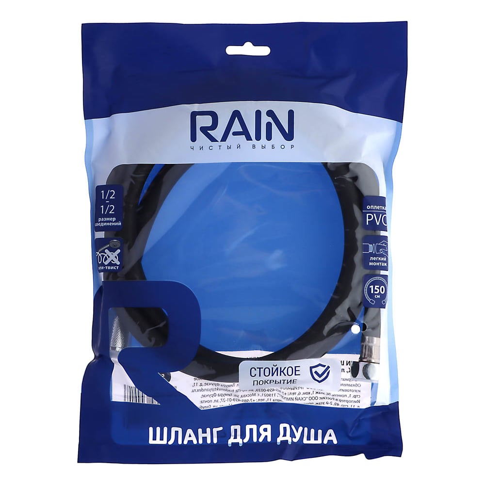 Шланг для душа RAIN 150 см., 1/2"-1/2", ПВХ, латунь, антитвист, черный 569-037