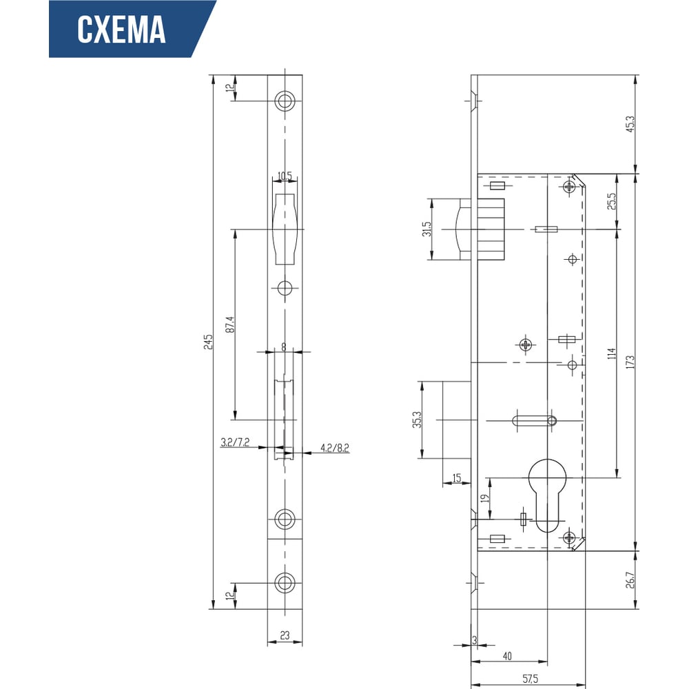 | Удаление ключевого отверстия (Backset) | 40 мм |