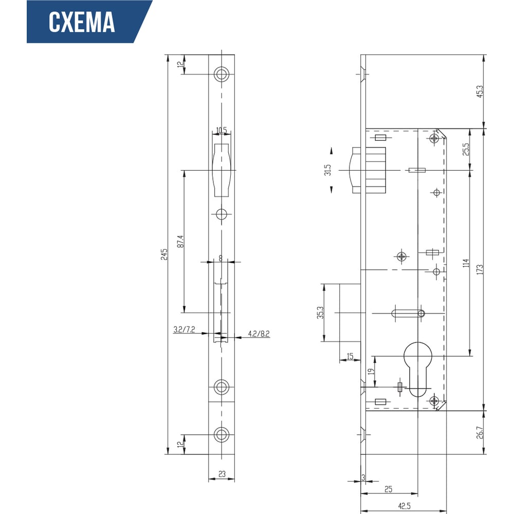 | Тип замка | врезной |