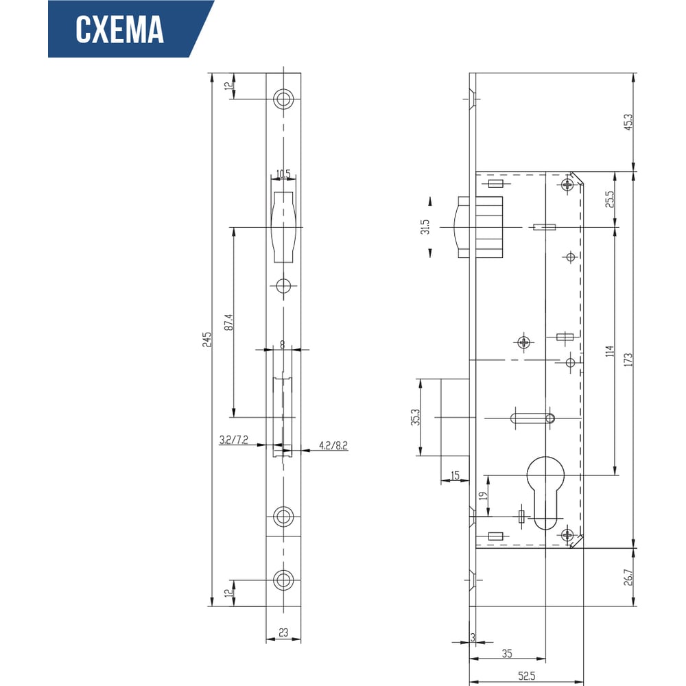 | Тип замка | врезной |