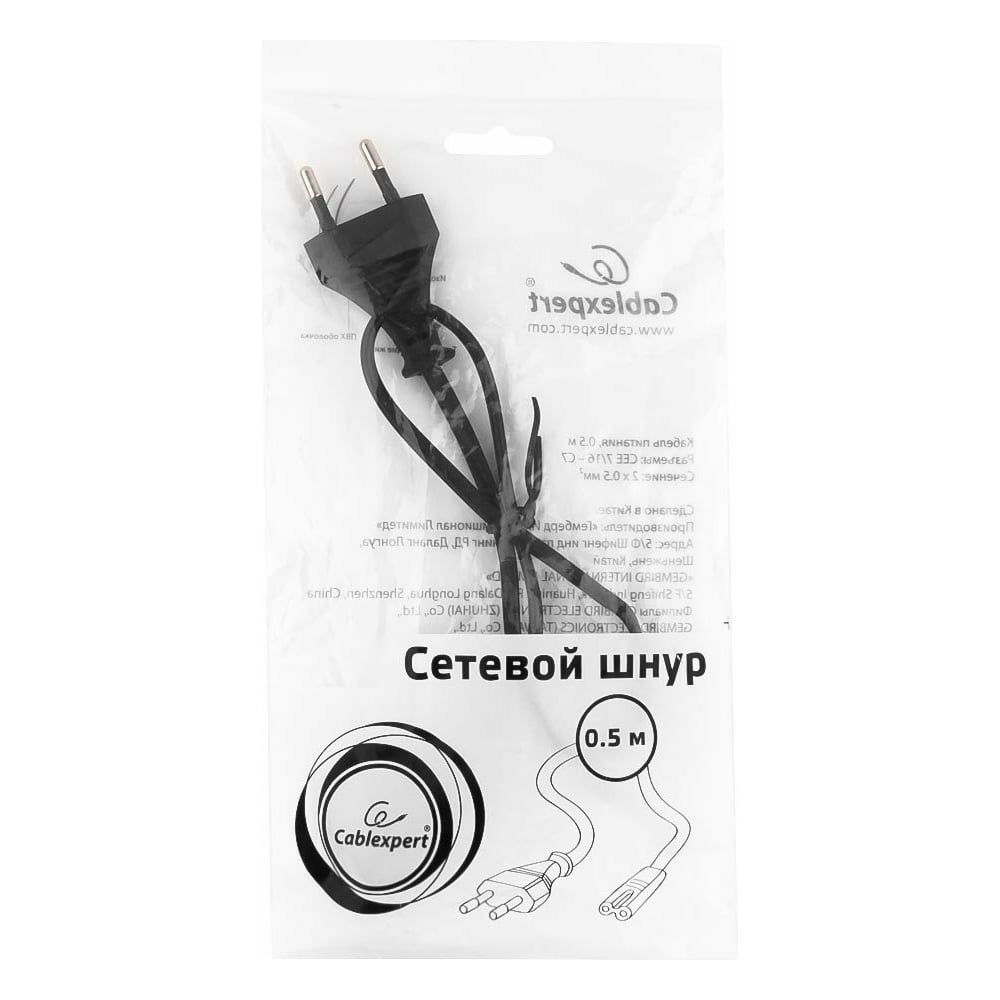 Кабель питания для аудио и видео техники Cablexpert 0.5м CEE 7/16-C7 2-pin 2x0,5 черный PC-184/2-0.5М