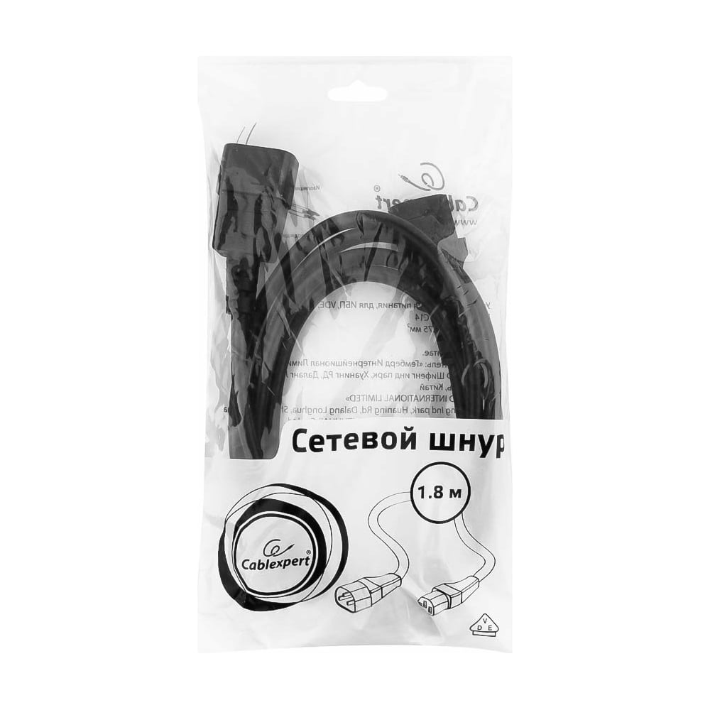 Кабель питания системный блок-монитор Cablexpert 1.8м C13-C14 VDE 3х0.75мм2, 10А с заземлением, 1.8м, черный, пакет PC-189-VDE