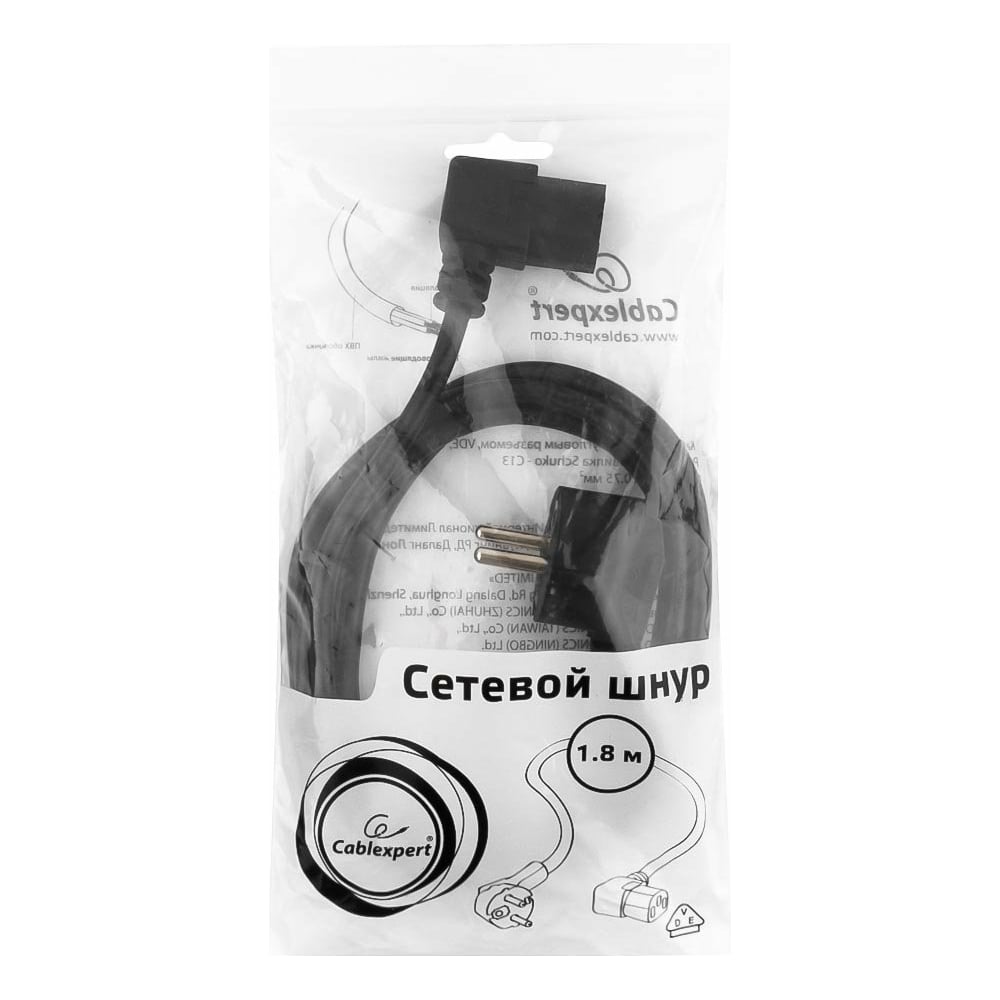 Кабель питания Cablexpert 1.8м Schuko-C13 VDE 10А черный угловой, разъем с заземлением PC-186A-VDE