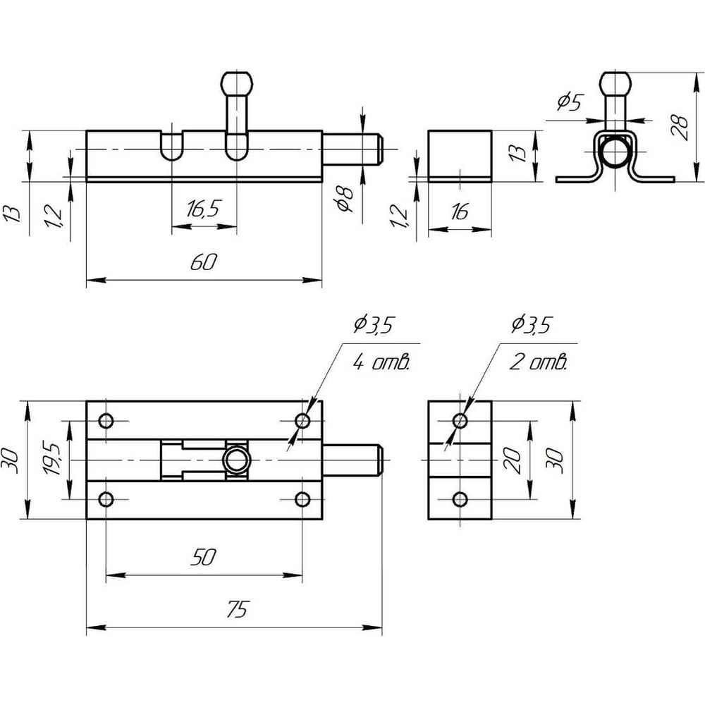 | Длина ригеля | 75 мм |