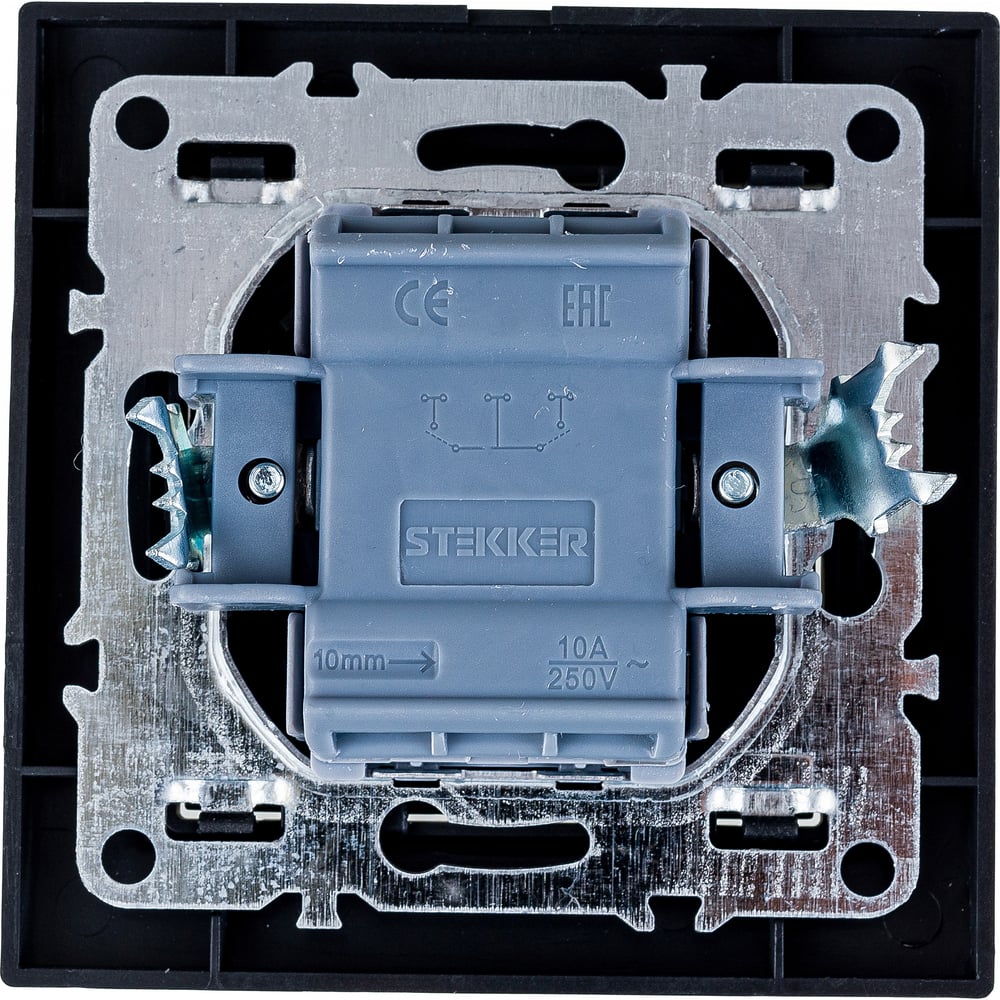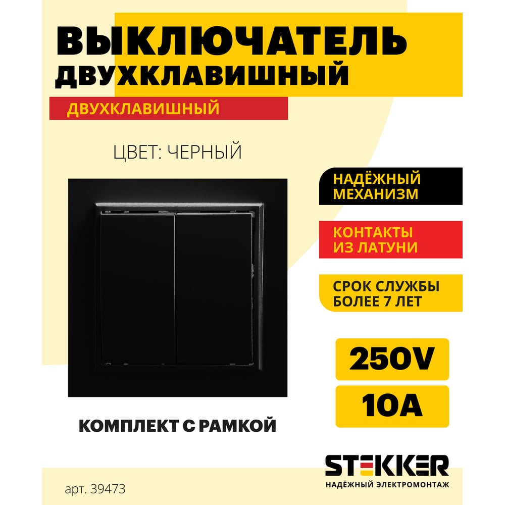 2-клавишный выключатель STEKKER PSW10-9004-03, 250V, 10А, серия Эрна, черный 39473