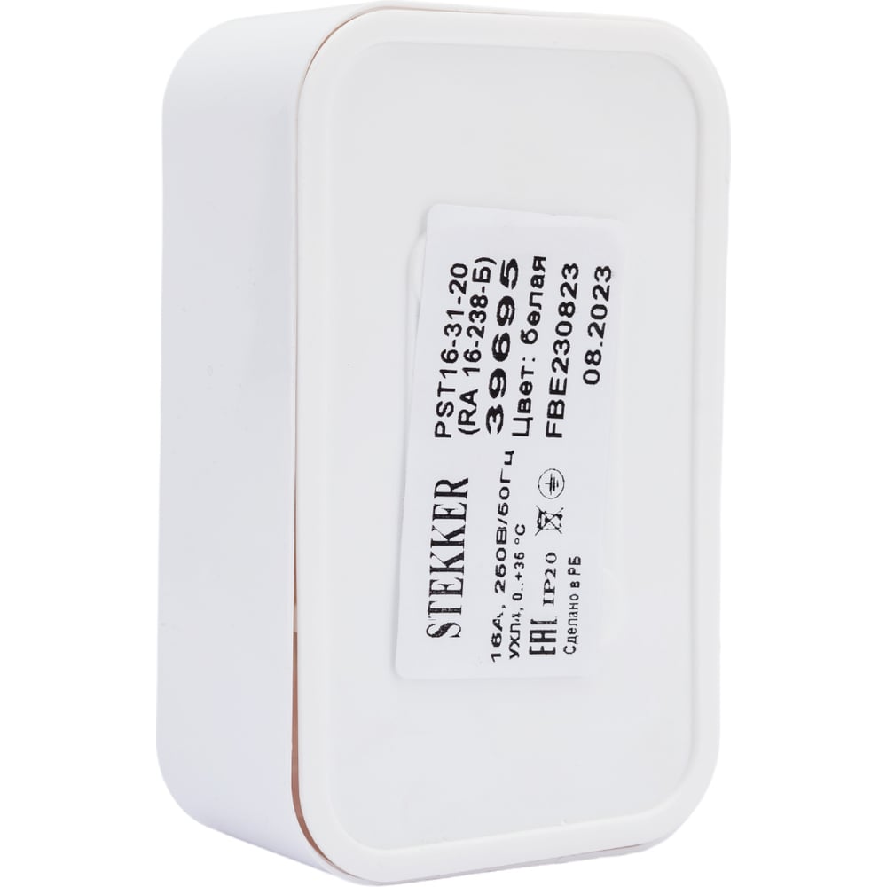 2-местная розетка STEKKER с заземлением PST16-31-20 RA 16-238-Б, пластик АВС, 16А, IP20, белый 39695