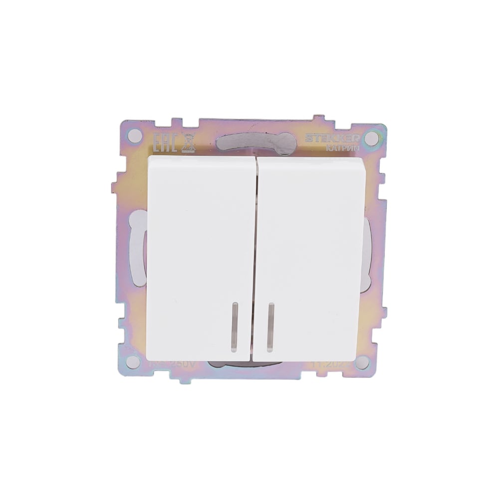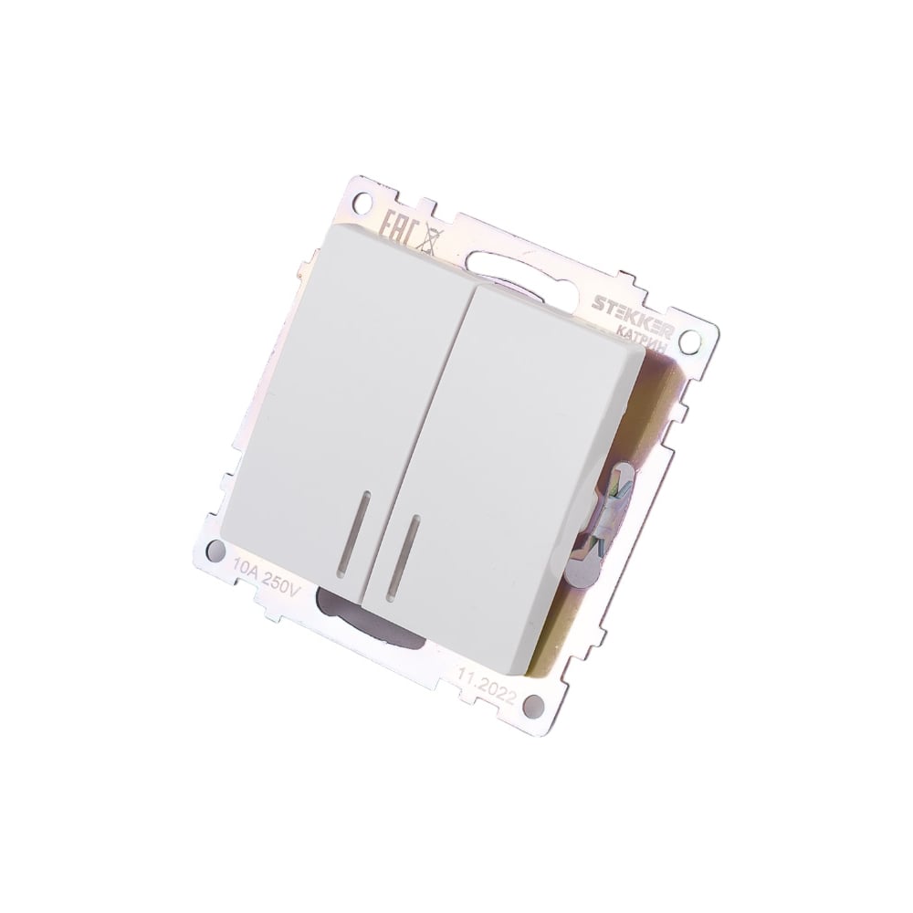 2-клавишный выключатель STEKKER с индикатором механизм, GLS10-7102-01, 10А, Катрин, белый 39301
