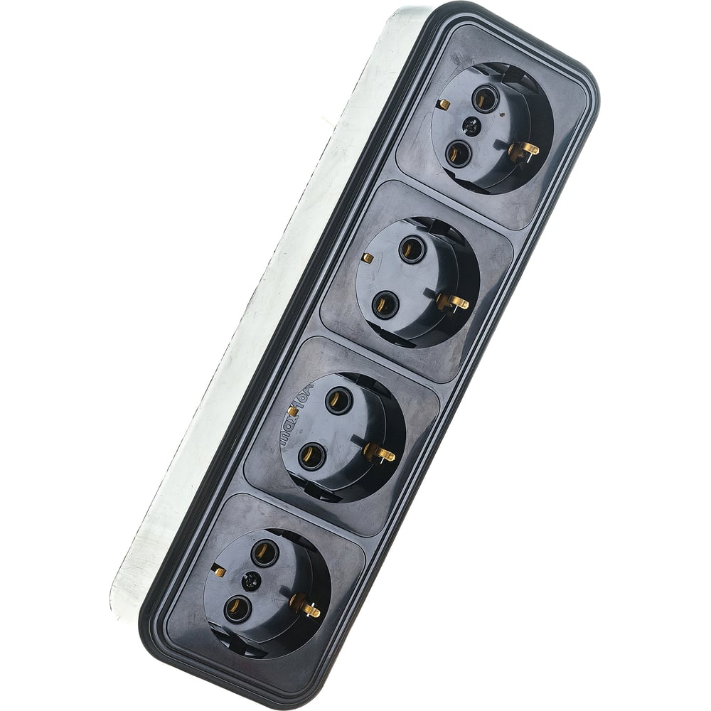 4-местная розетка STEKKER с заземлением PST16-60-20 RA 16-466-Ч, пластик АВС, 16А, IP20, черный 39704