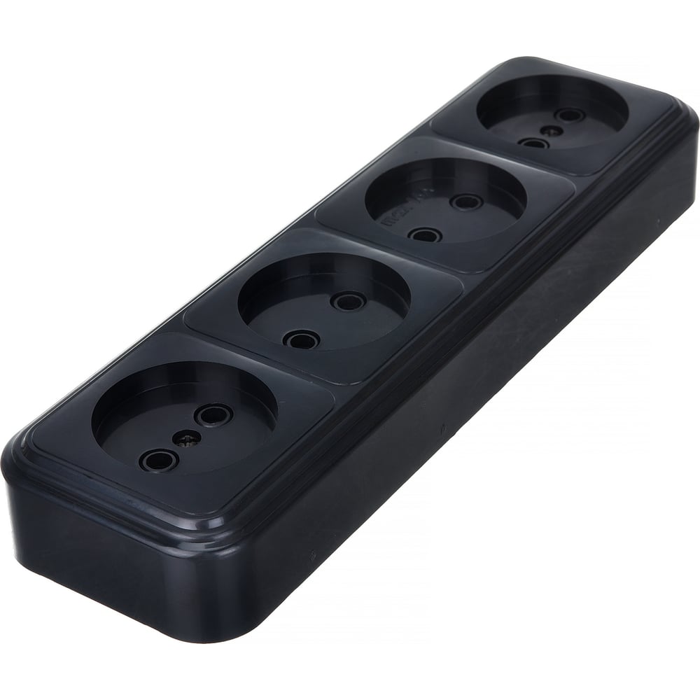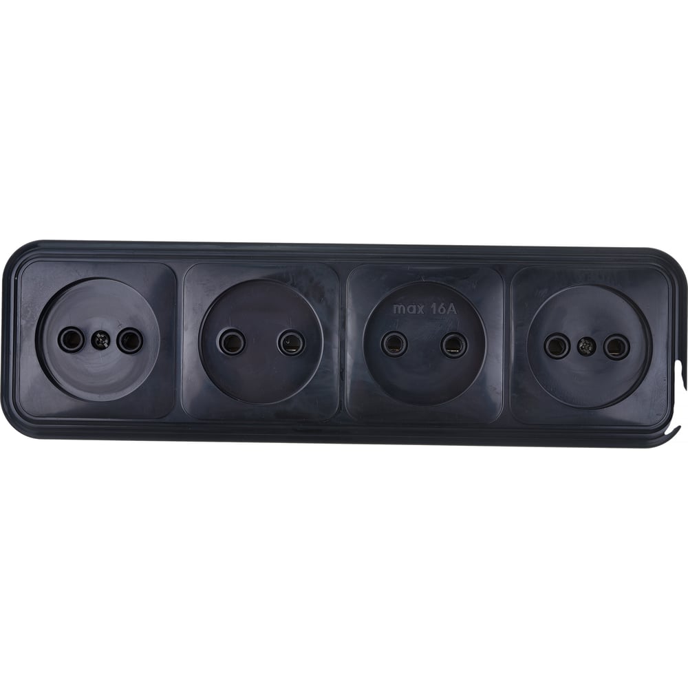 4-местная розетка STEKKER без заземления PST16-60-20 RA 16-464-Ч, пластик АВС, 16А, IP20, черный 39702