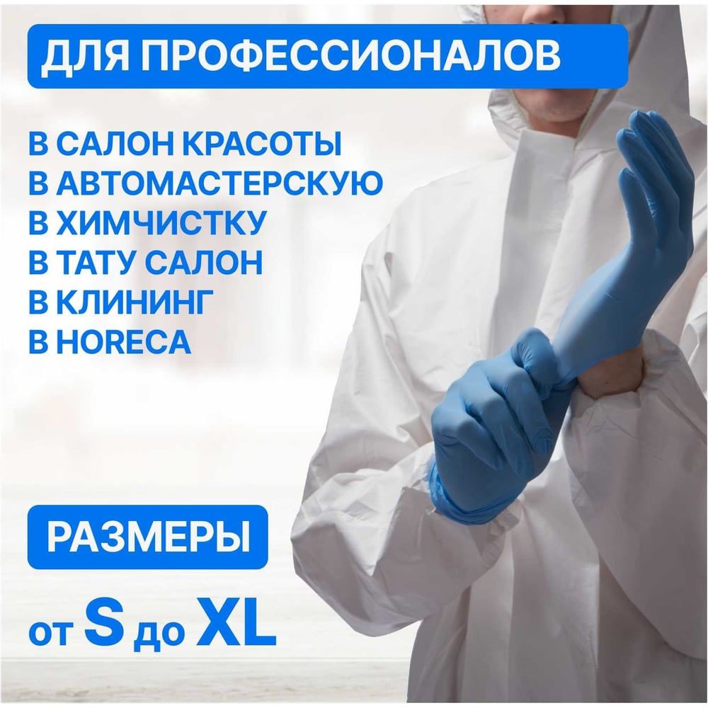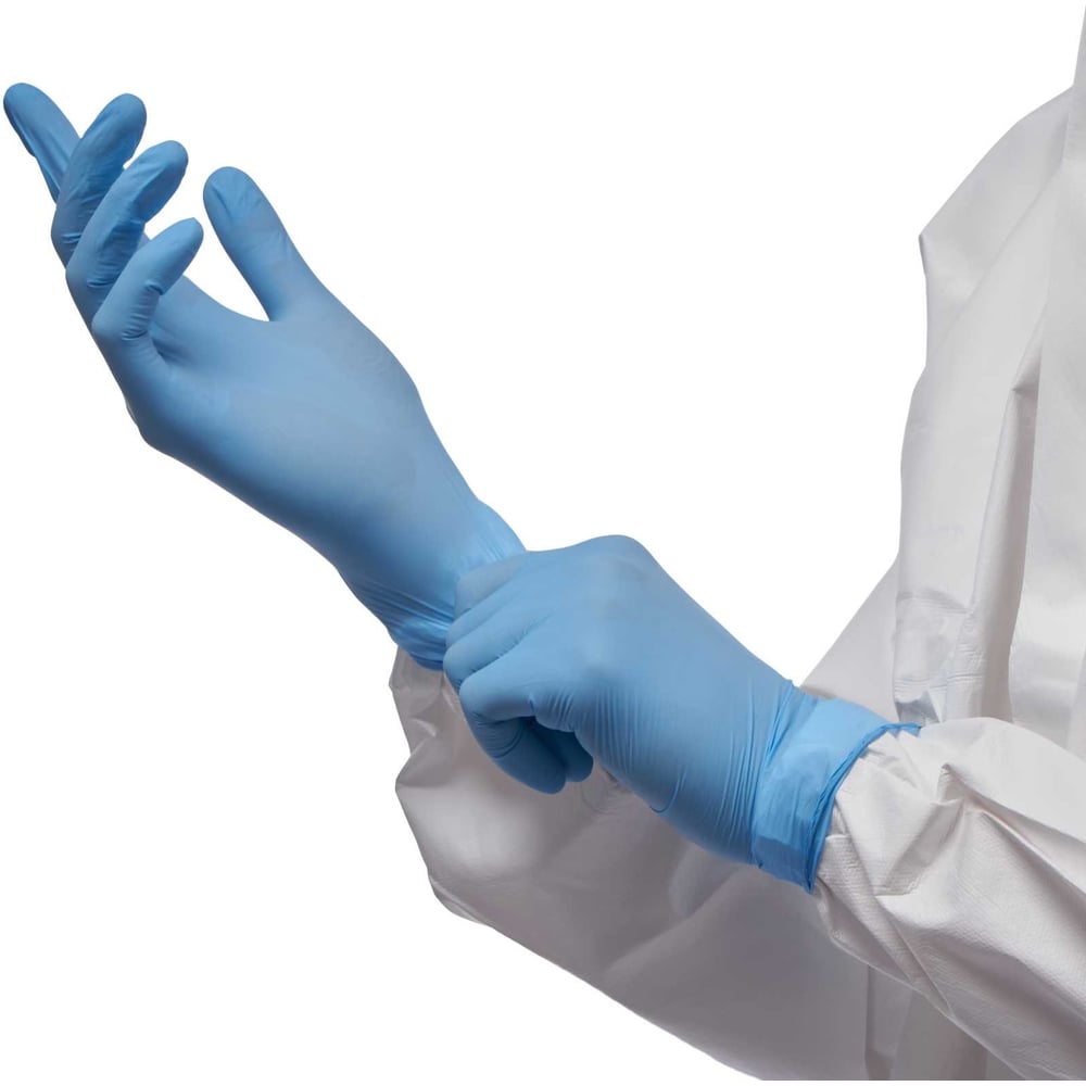 Нитриловые перчатки с текстурированными пальцами Puretech Neutrino 24 см, L, голубые, 50пар G1053