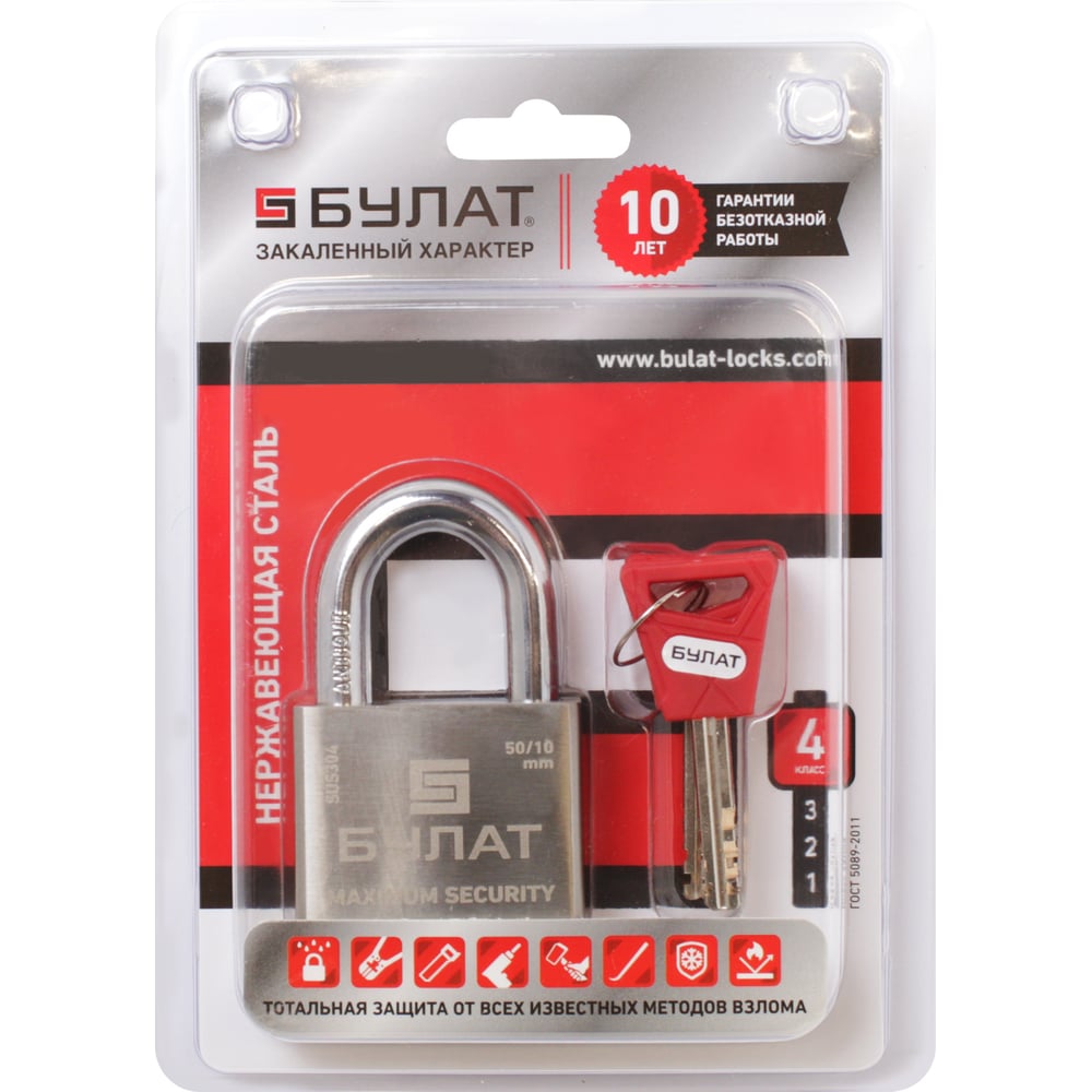Навесной замок БУЛАТ ВС 3-С50 НС (нержавеющая сталь; 10 мм) 13989