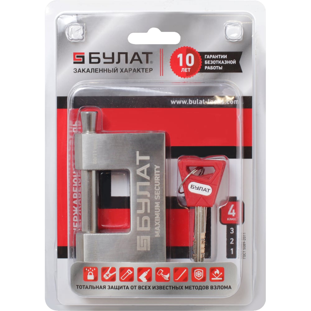 Навесной замок БУЛАТ ВС 3-К80 НС (нержавеющая сталь; 11 мм) 13994