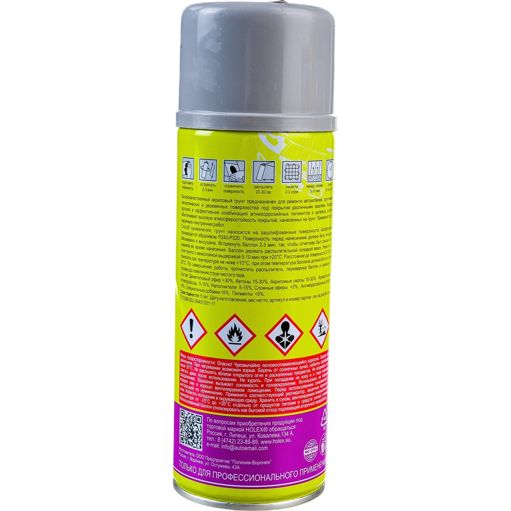 Акриловый грунт HOLEX серый аэрозоль, 520мл HAS-2542