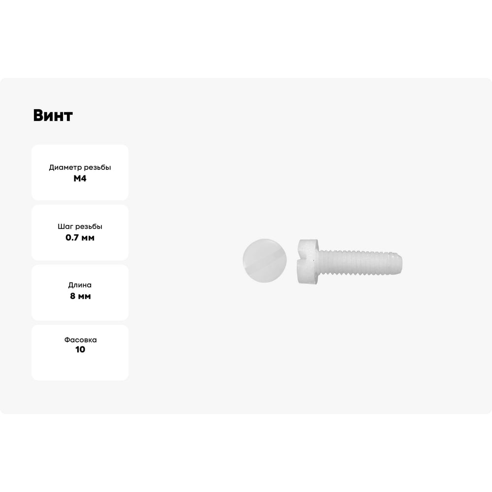 Винт с цилиндрической головкой со шлицем DINFIX DIN 84, полиамид (пластик), M4x8, 10 шт. 00-00001490