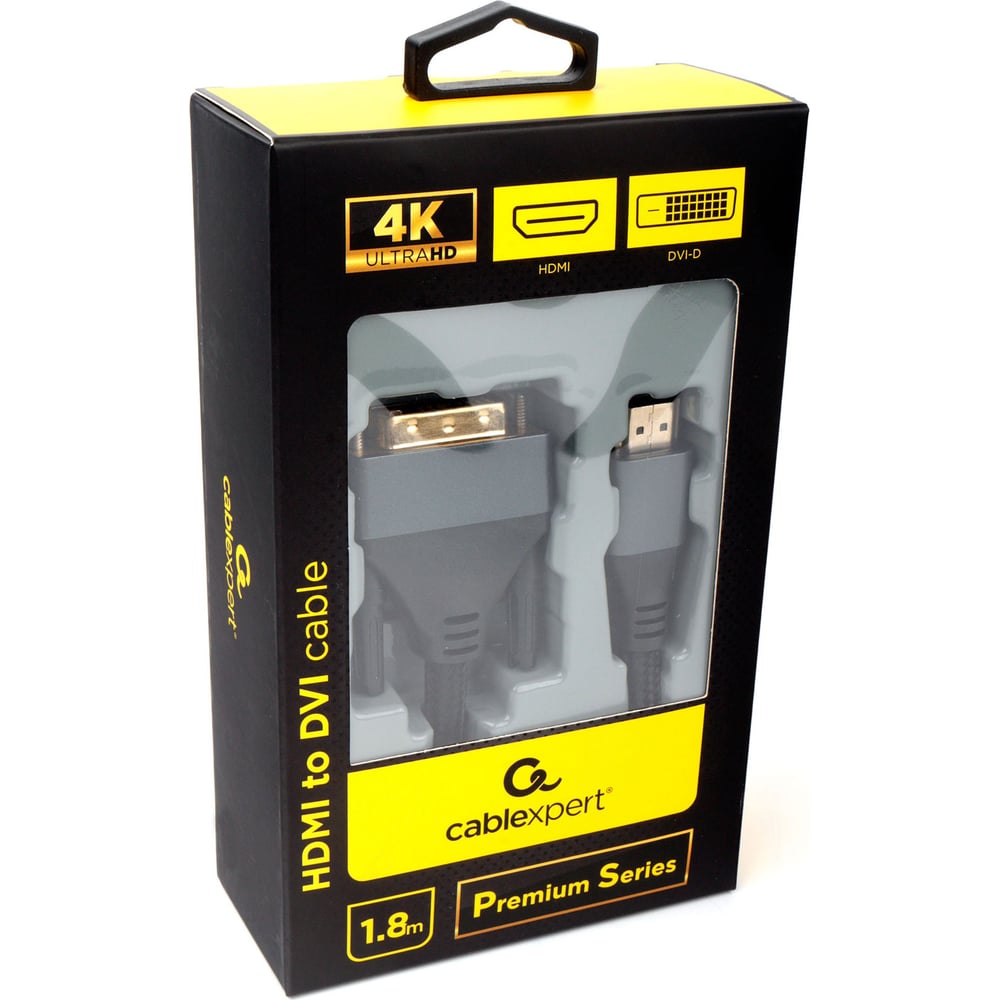 Кабель Cablexpert 4K 19M/19M 1.8м single link медь, нейлоновая оплетка металлические разъемы HDMI-DVI CC-HDMI-DVI-4K-6