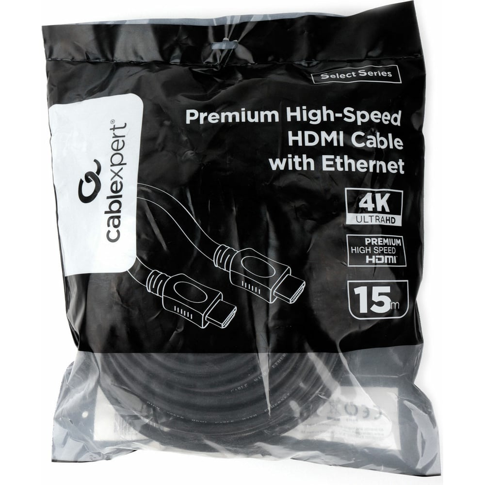 Кабель HDMI Cablexpert 15м v2.0 19M/19M серия Light черный позолоченные разъемы экран пакет CC-HDMI4L-15M