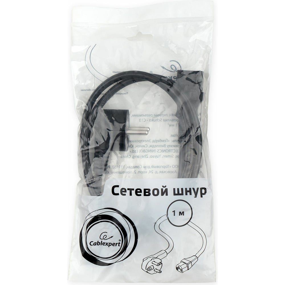 Кабель питания Cablexpert Schuko- C13, 3x1кв.мм, черный, с заземлением, пакет 1м PC-186-1-1M