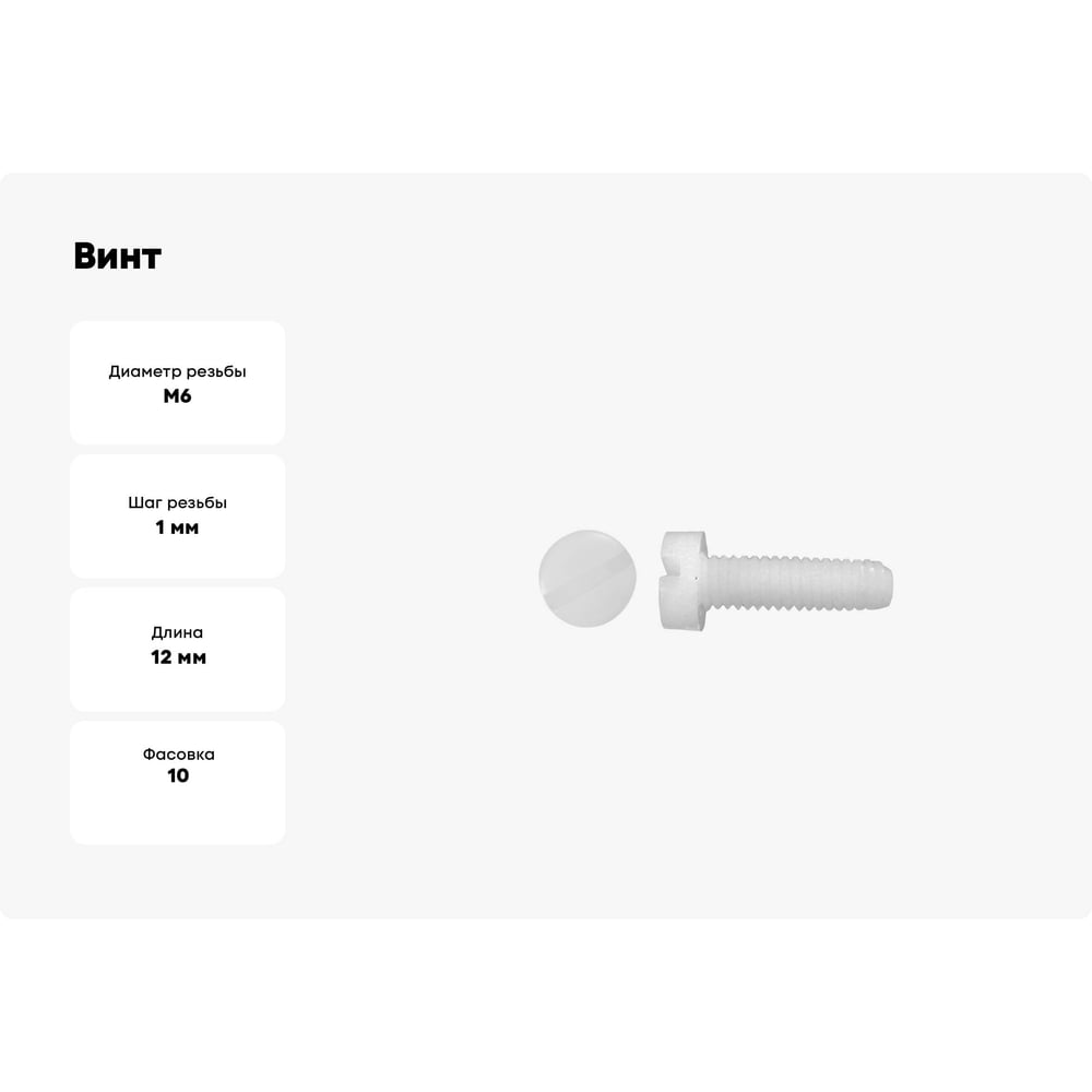 Винт с цилиндрической головкой со шлицем DINFIX DIN 84, полиамид (пластик), M6x12, 10 шт. 00-00001503