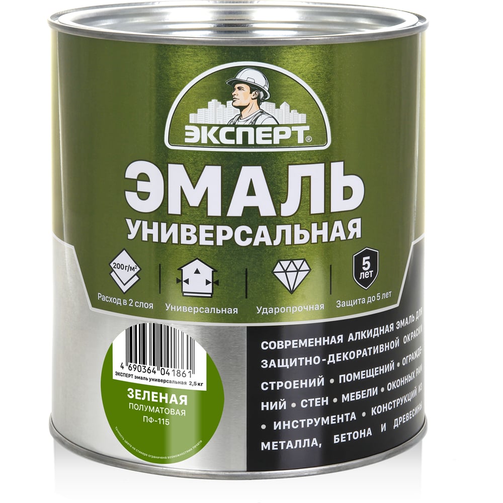 Универсальная алкидная эмаль ЭКСПЕРТ полуматовая, зеленая, 2.5 кг 30500