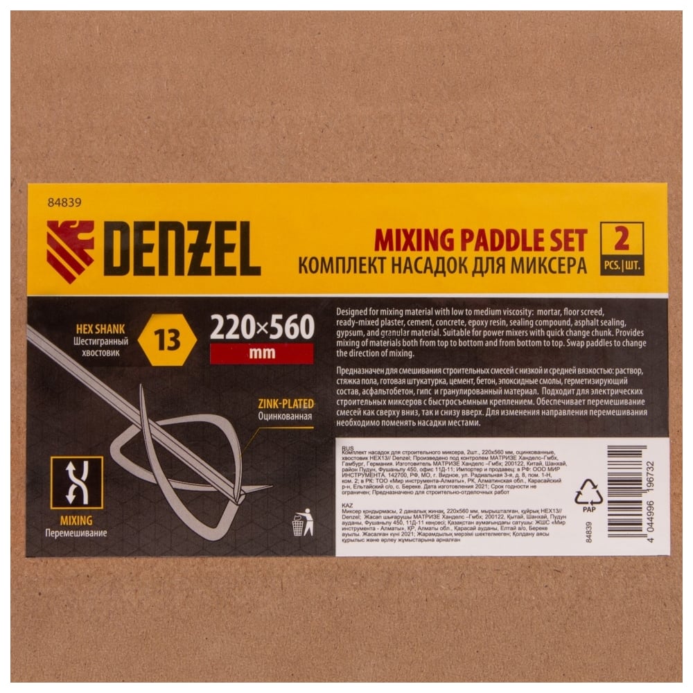 Комплект насадок для строительного миксера 2 шт, 220х560 мм, оцинкованные, хвостовик HEX13 Denzel 84839