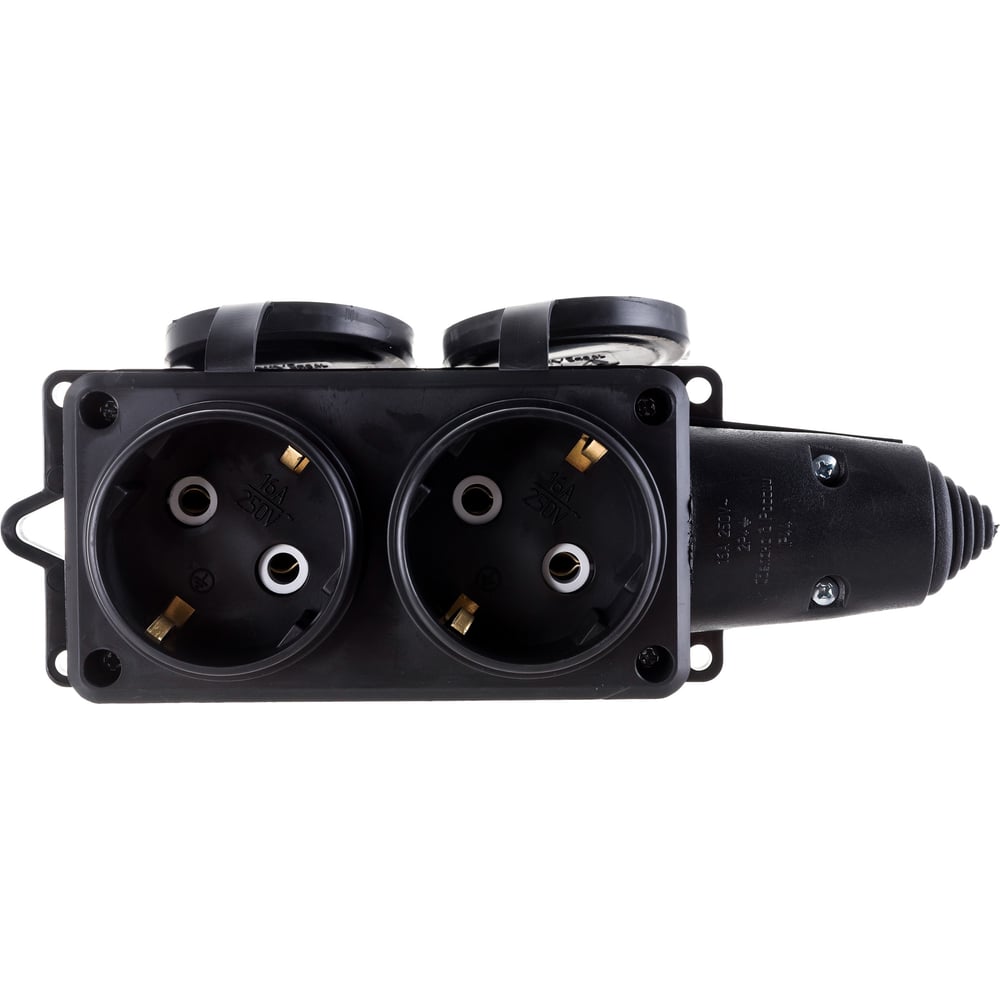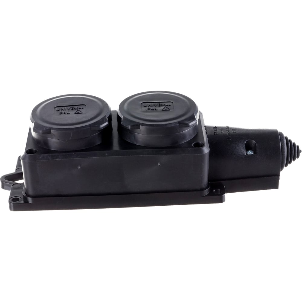 2-х местная однофазная колодка UNIVersal с заглушками КОМПАКТ каучук 16А 250В IP44 еврослот 1788