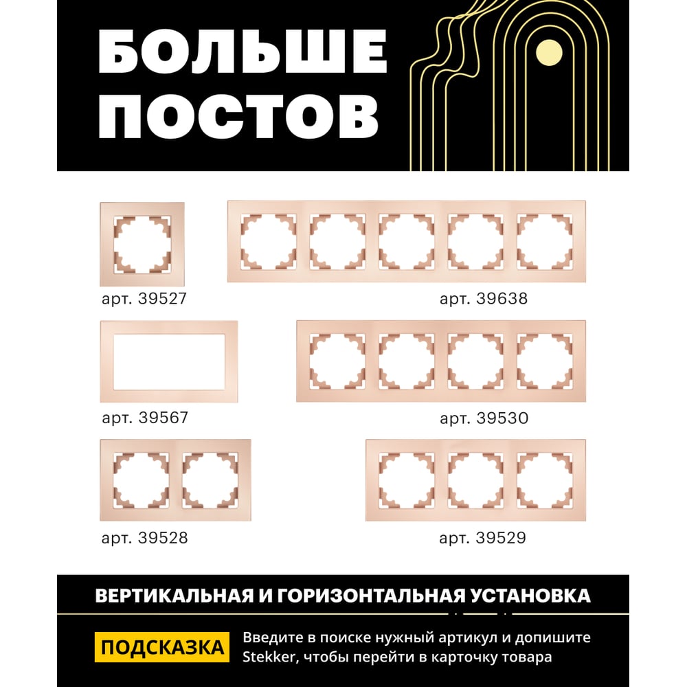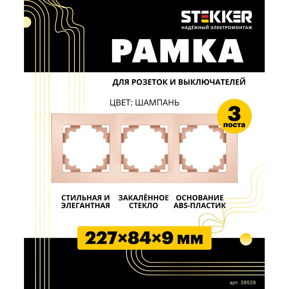 Горизонтальная 3-местная рамка STEKKER серия Катрин, стеклянная, GFR00-7003-02, шампань 39529