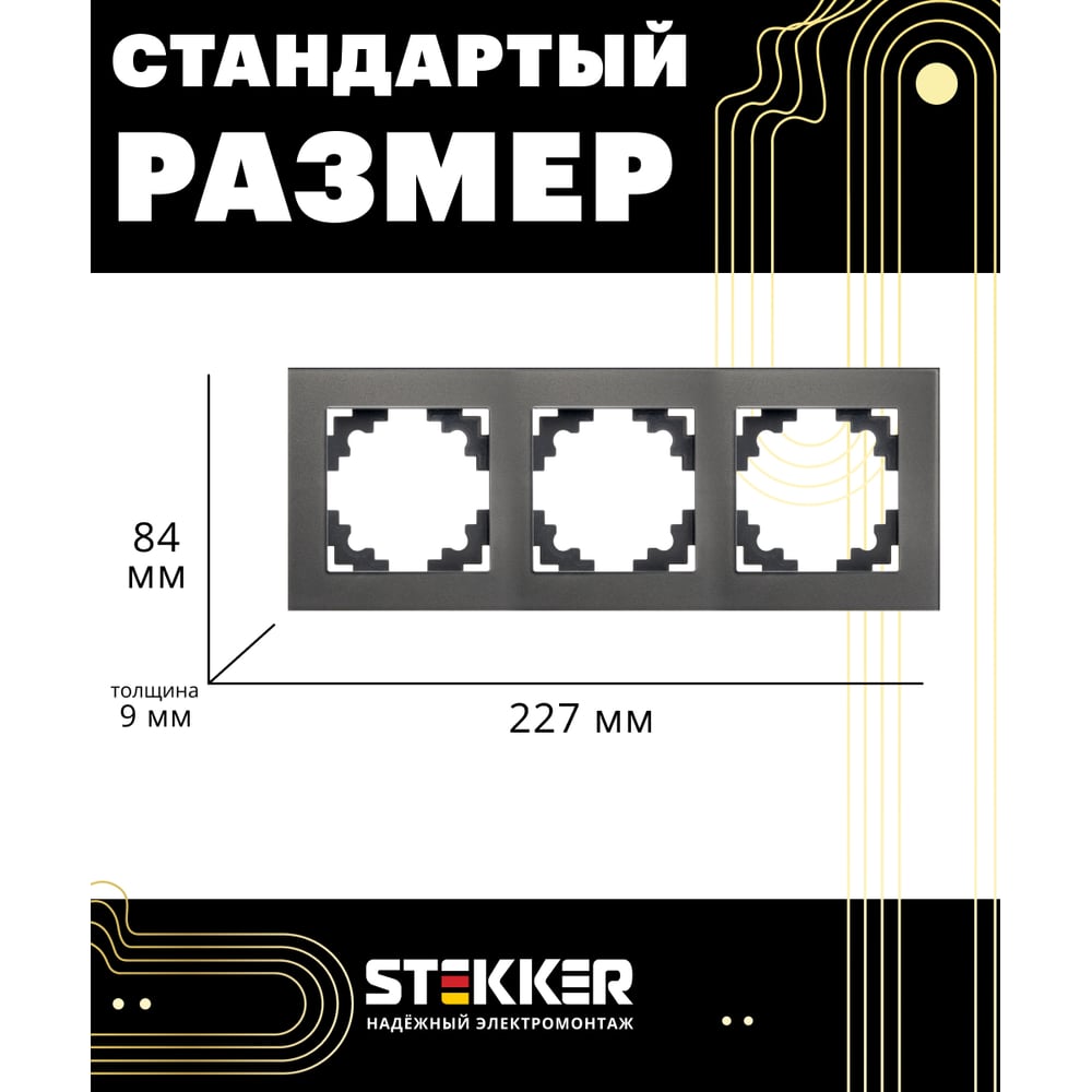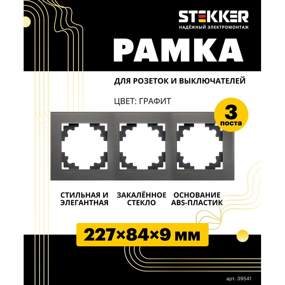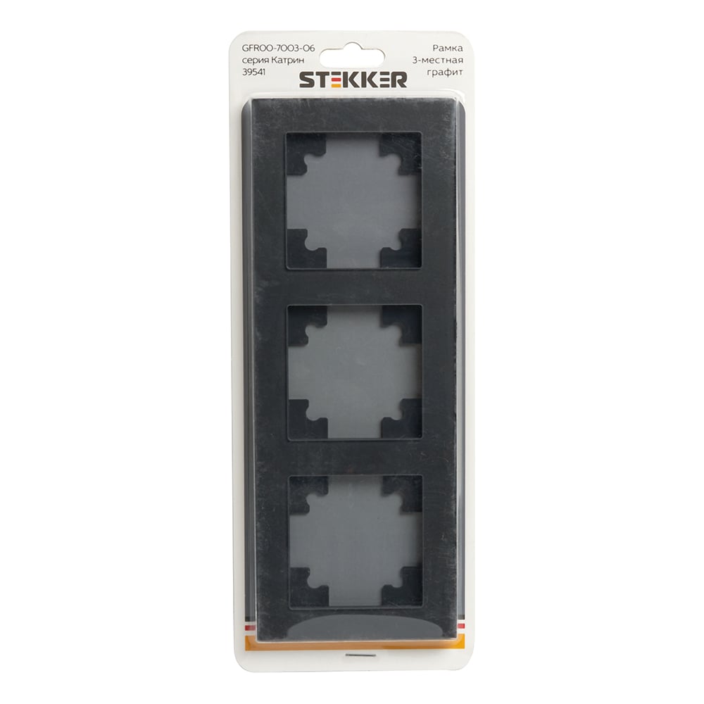 Горизонтальная 3-местная рамка STEKKER серия Катрин, стеклянная, GFR00-7003-06, графит 39541