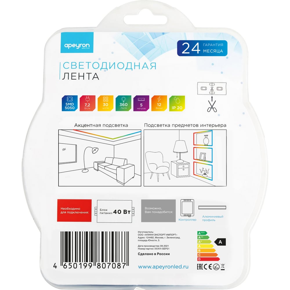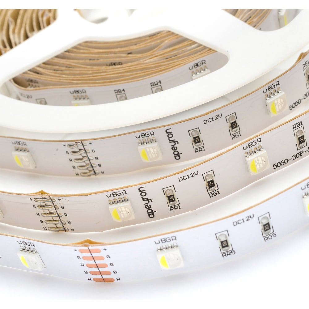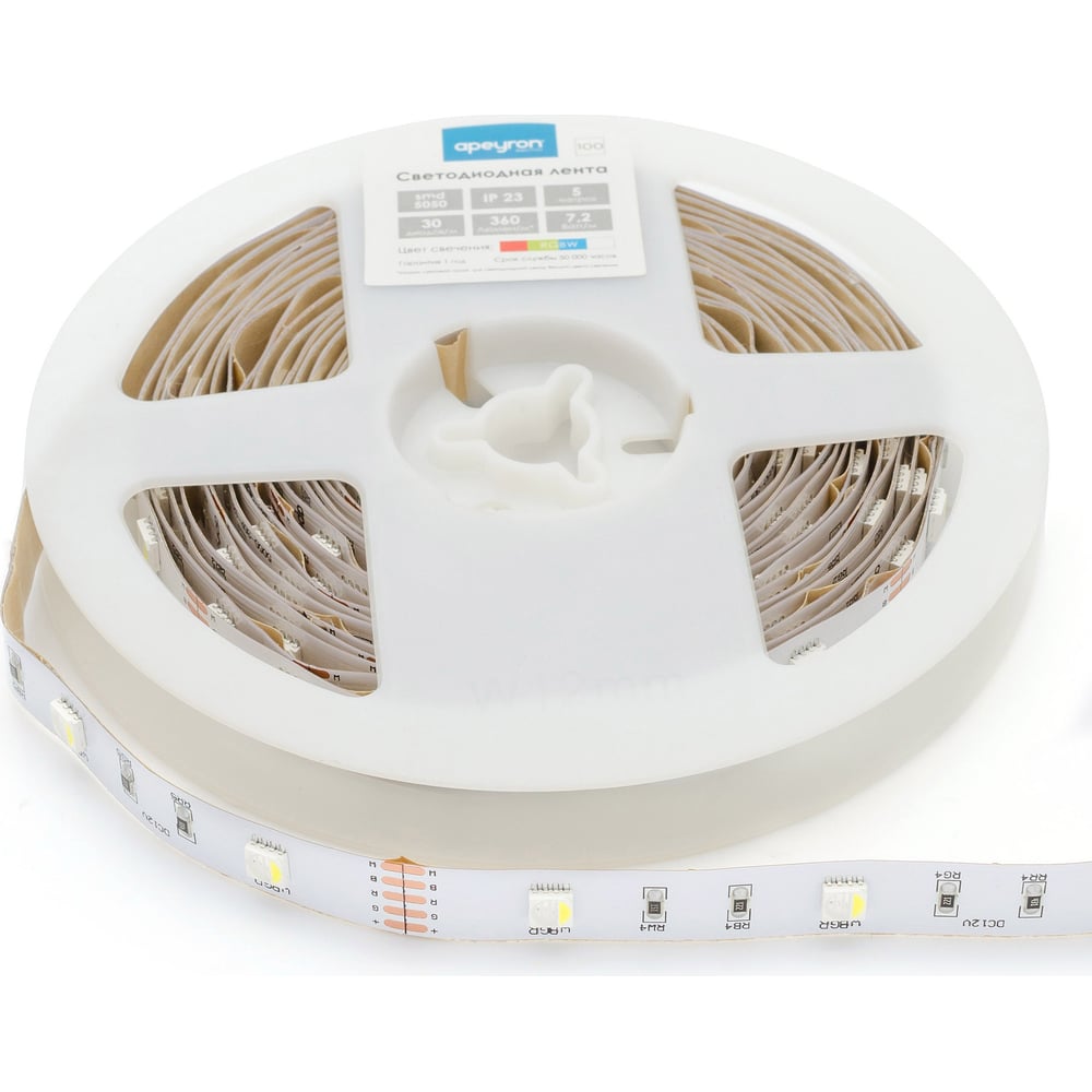 Светодиодная лента Apeyron в блистере, 5м 12В, 7,2Вт/м, smd5050, 30д/м, IP20, 360Лм/м, подложка 10мм, rgbw 100BL