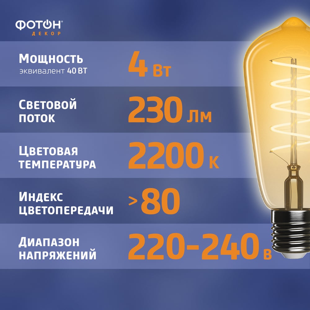 | Эквивалент лампы накаливания | 40 Вт |