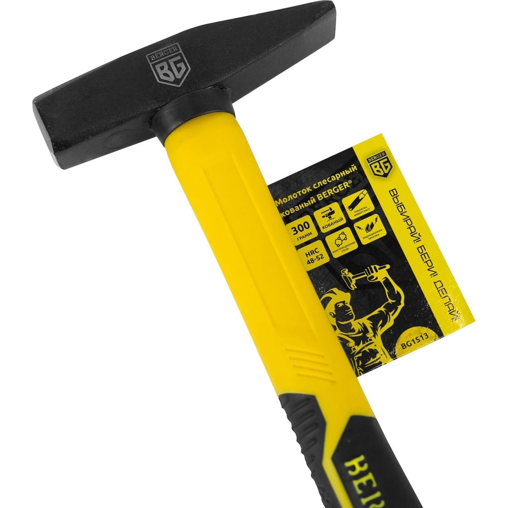 Слесарный молоток Berger BG кованый, фиберглассовая рукоятка, 300 г BG1513