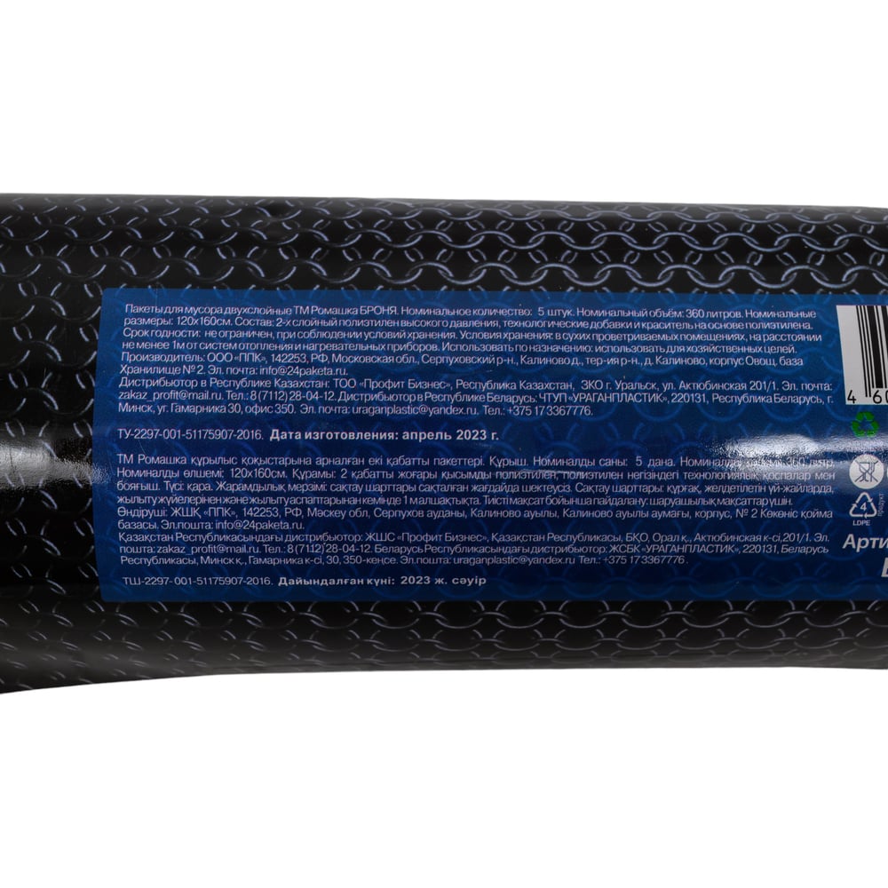 Мешки для мусора в рулоне Броня (5 шт; 120x160 см; 360 л; черные; ПВД; 60 мкм) Ромашка ВР-0015