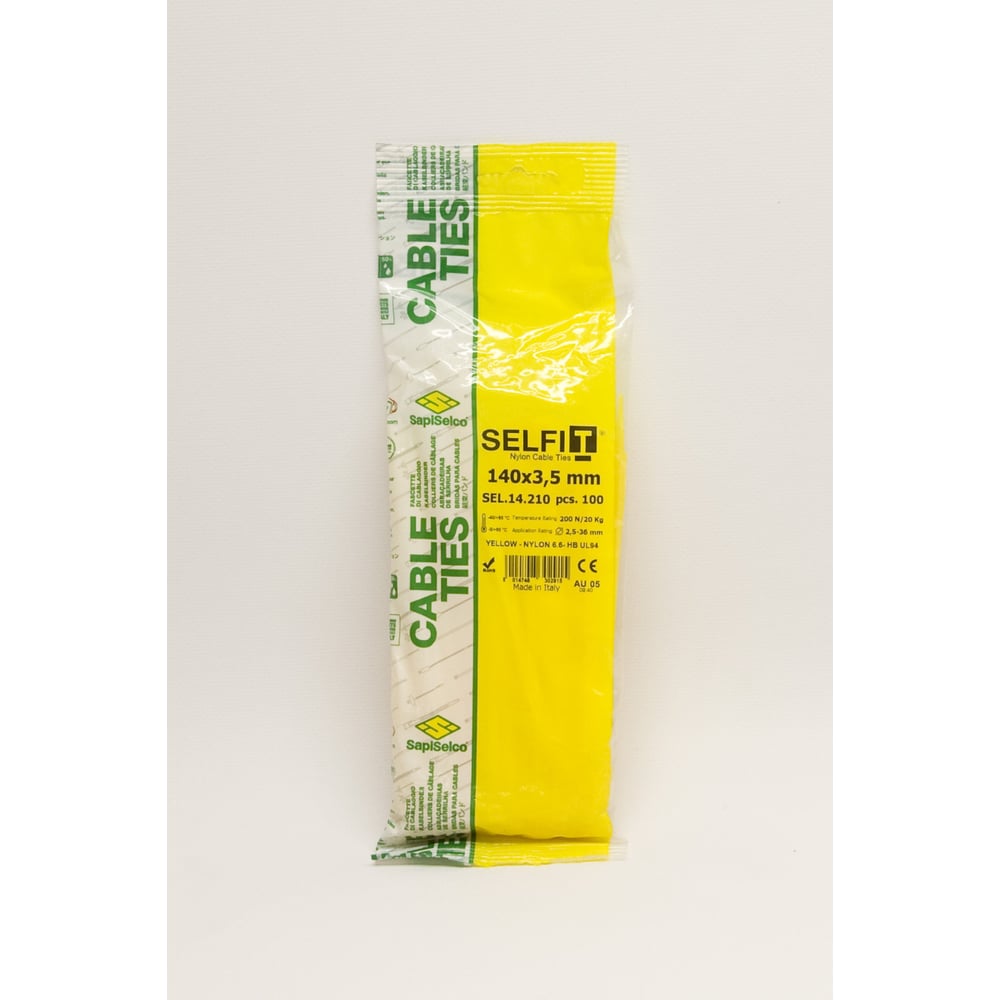 Стяжки SapiSelco желтого цвета, 3.5x140 мм, полиамид 6.6, уп. 100 шт. SEL.14.210R