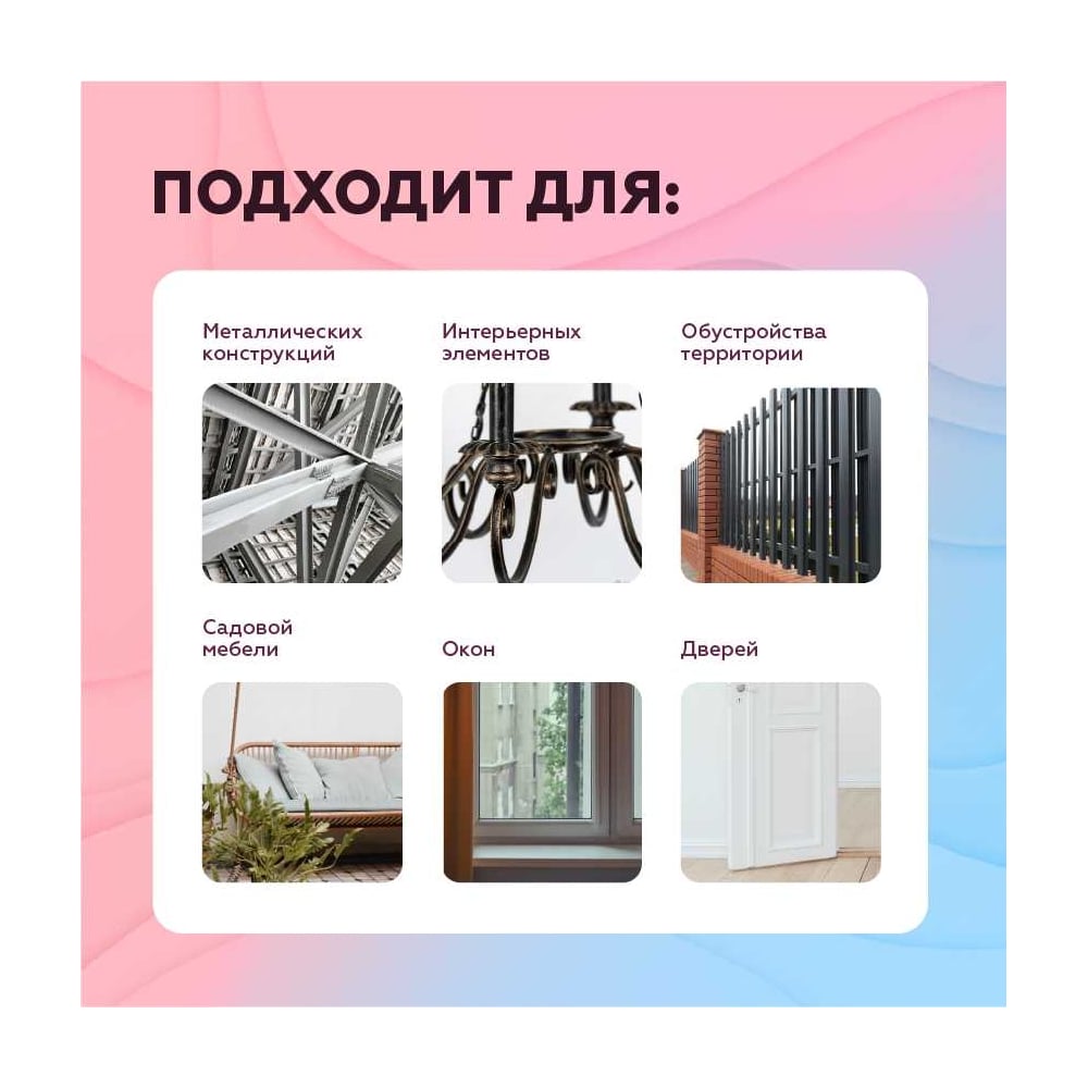 | Основания | бетон/кирпич/загрунтованный металл/дерево |