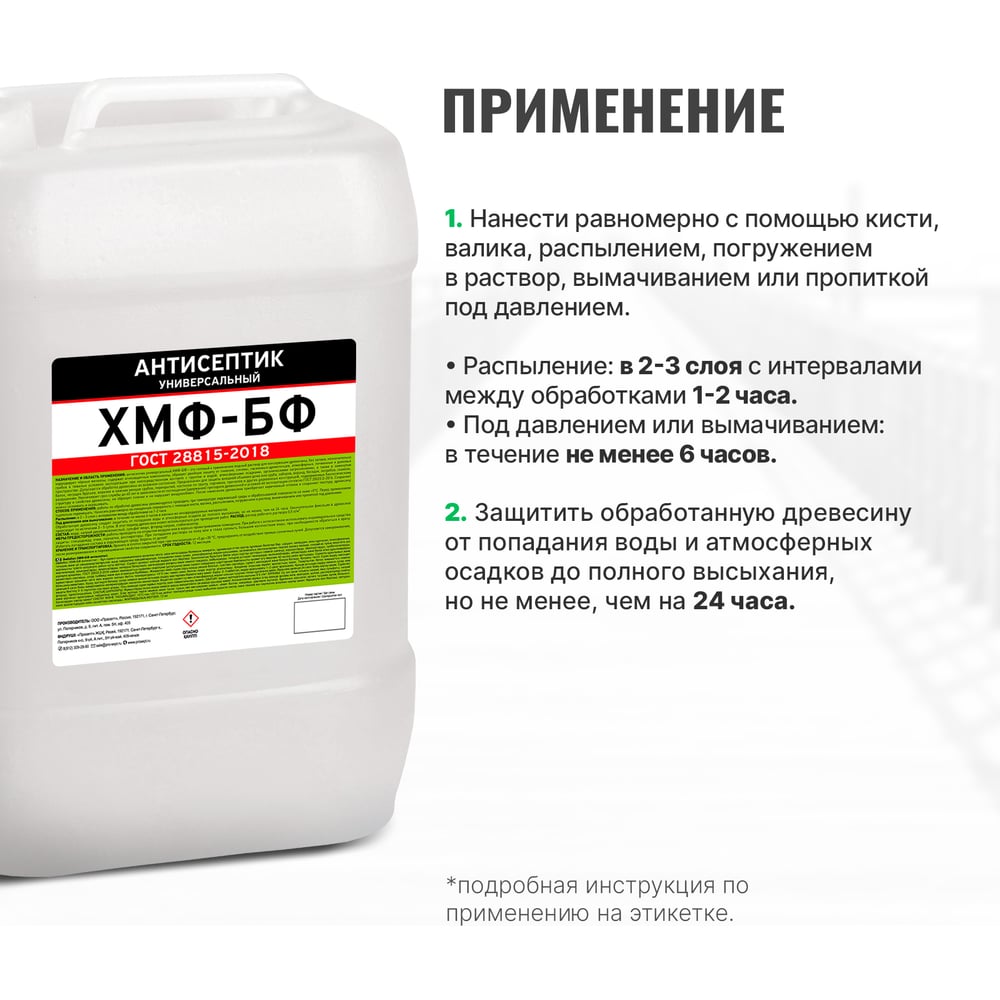 | Способ нанесения | кисть/валик/погружение/распылитель/вакуумная импрегнация |