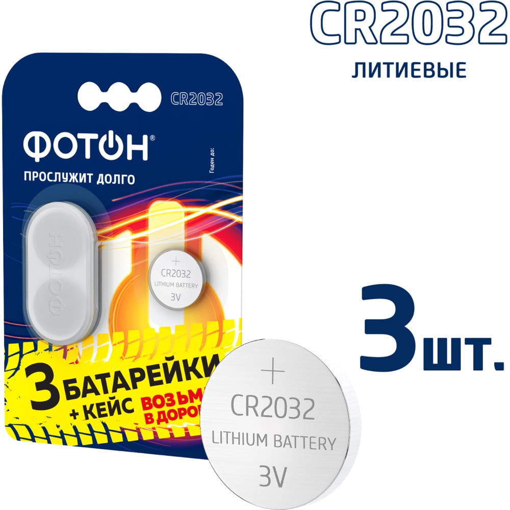 Батарейки литиевые таблетки, дисковые ФОТОН CR2032 3 шт + кейс 24345