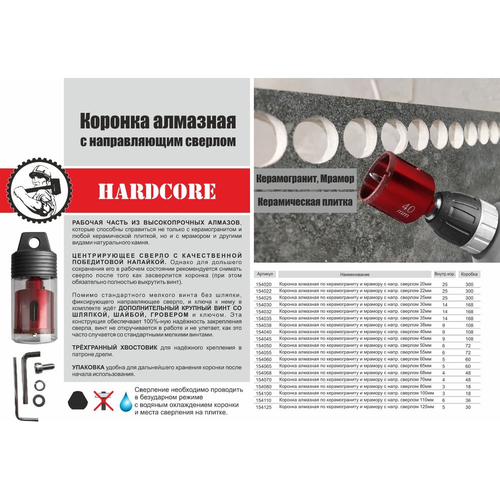 Алмазная коронка по керамограниту и мрамору Hardcore 154125