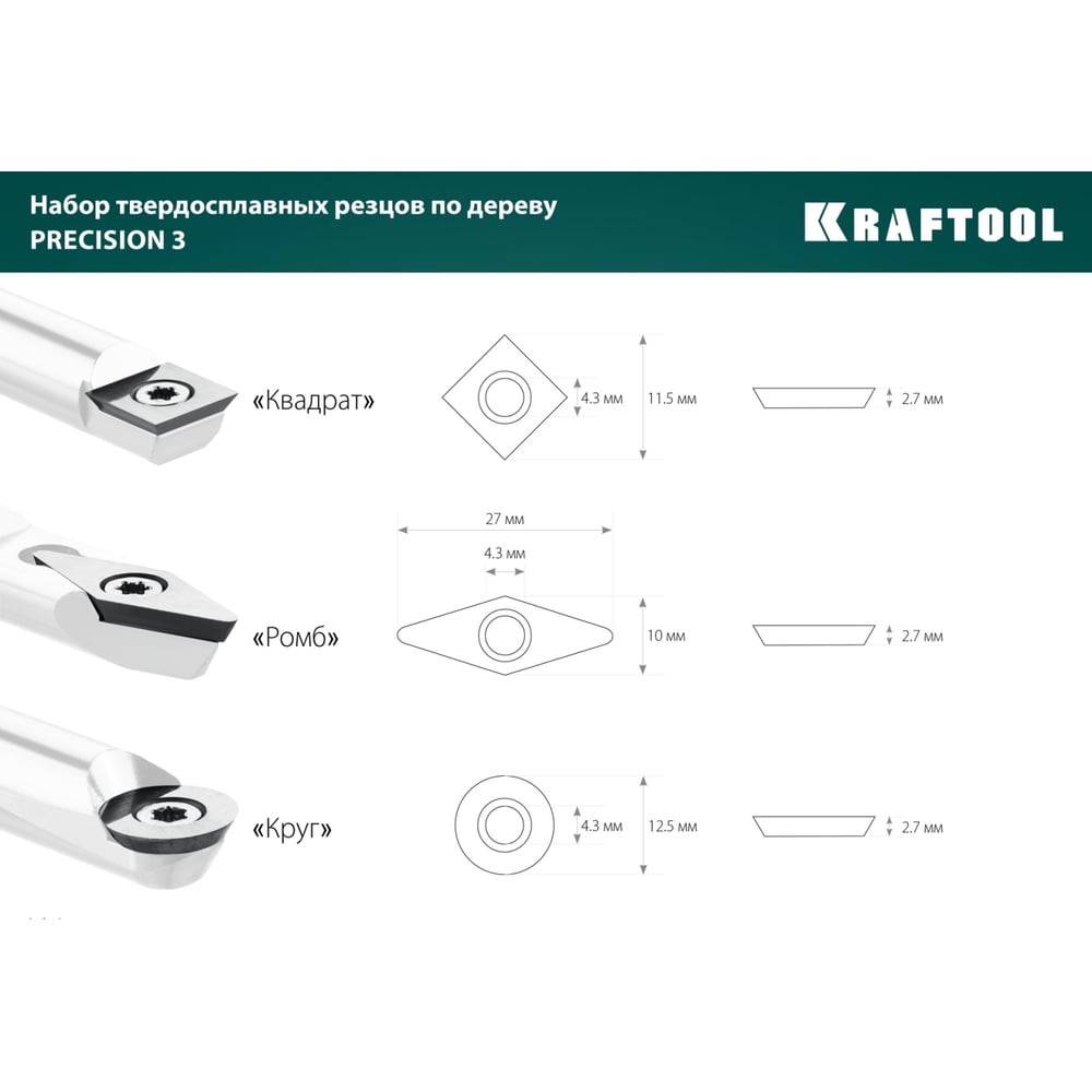 Набор ручных резцов по дереву KRAFTOOL Precision-3 18369