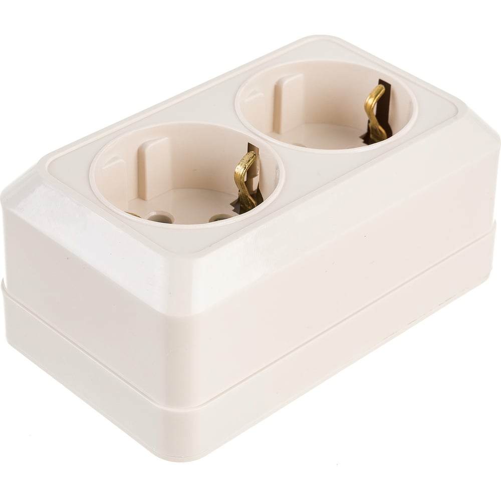 Розетка Intro Quadro с заземление двойная 2x2P+E Schuko, 16А-250В, IP20, открытая установка, слоновая кость, Б0053803