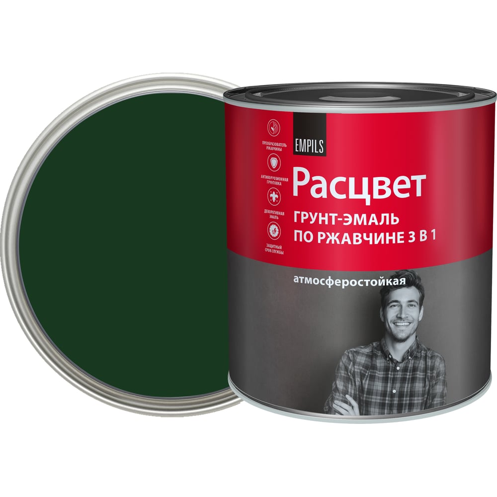 Грунт-эмаль по ржавчине Расцвет алкидная, темно-зеленая, 2.7 кг 72963