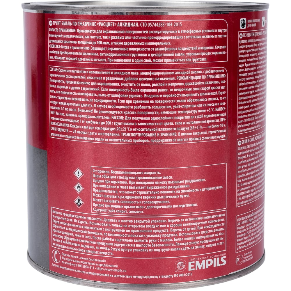 Алкидная грунт-эмаль по ржавчине Расцвет 65178