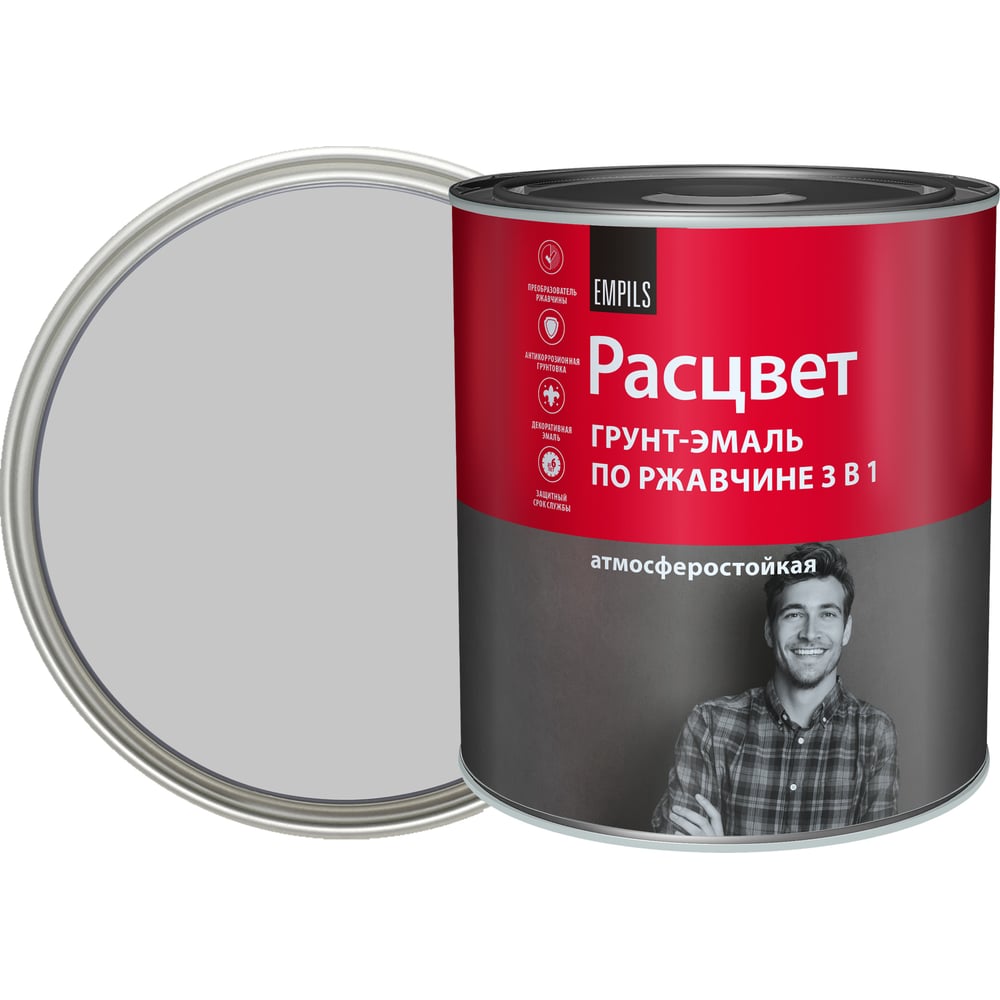 Грунт-эмаль по ржавчине Расцвет алкидная, светло-серая, 2.7 кг 72971