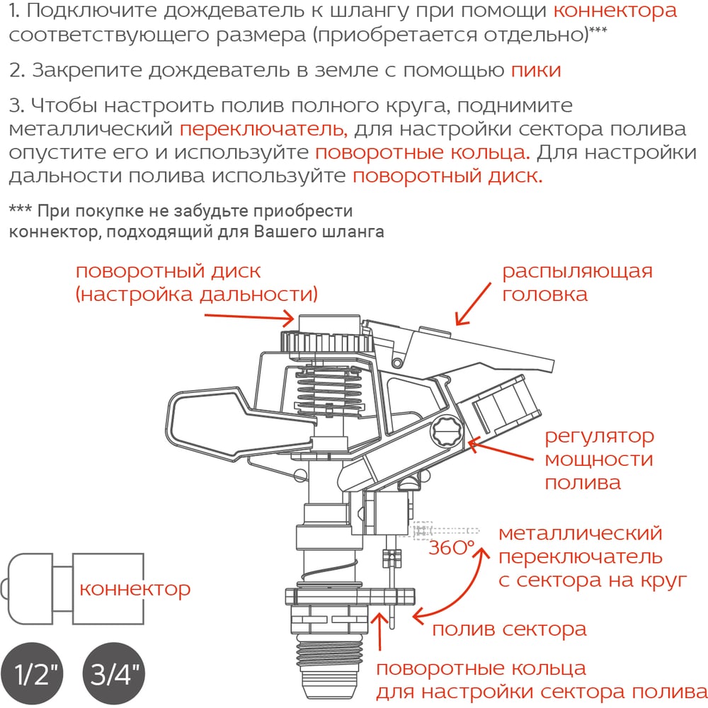 | Max радиус полива | 8 м |