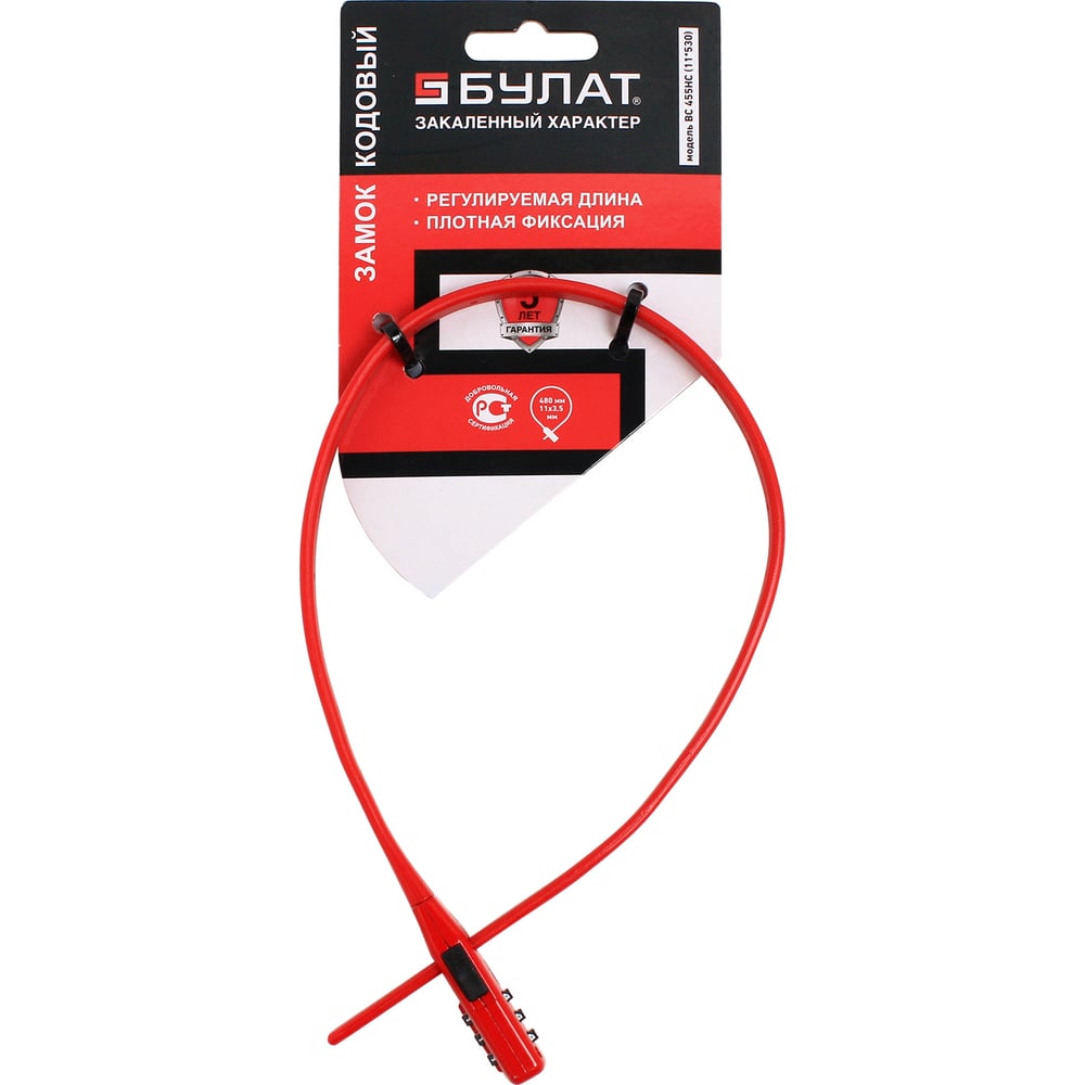 Навесной замок БУЛАТ ВС 455 НС (11х530 мм; кодовый; с нержавеющим тросом) 14034