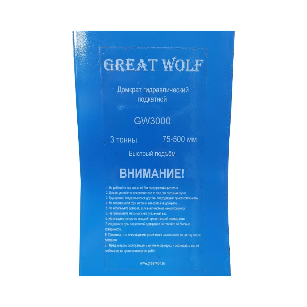 Низкопрофильный гидравлический подкатной домкрат Great Wolf GW-3000