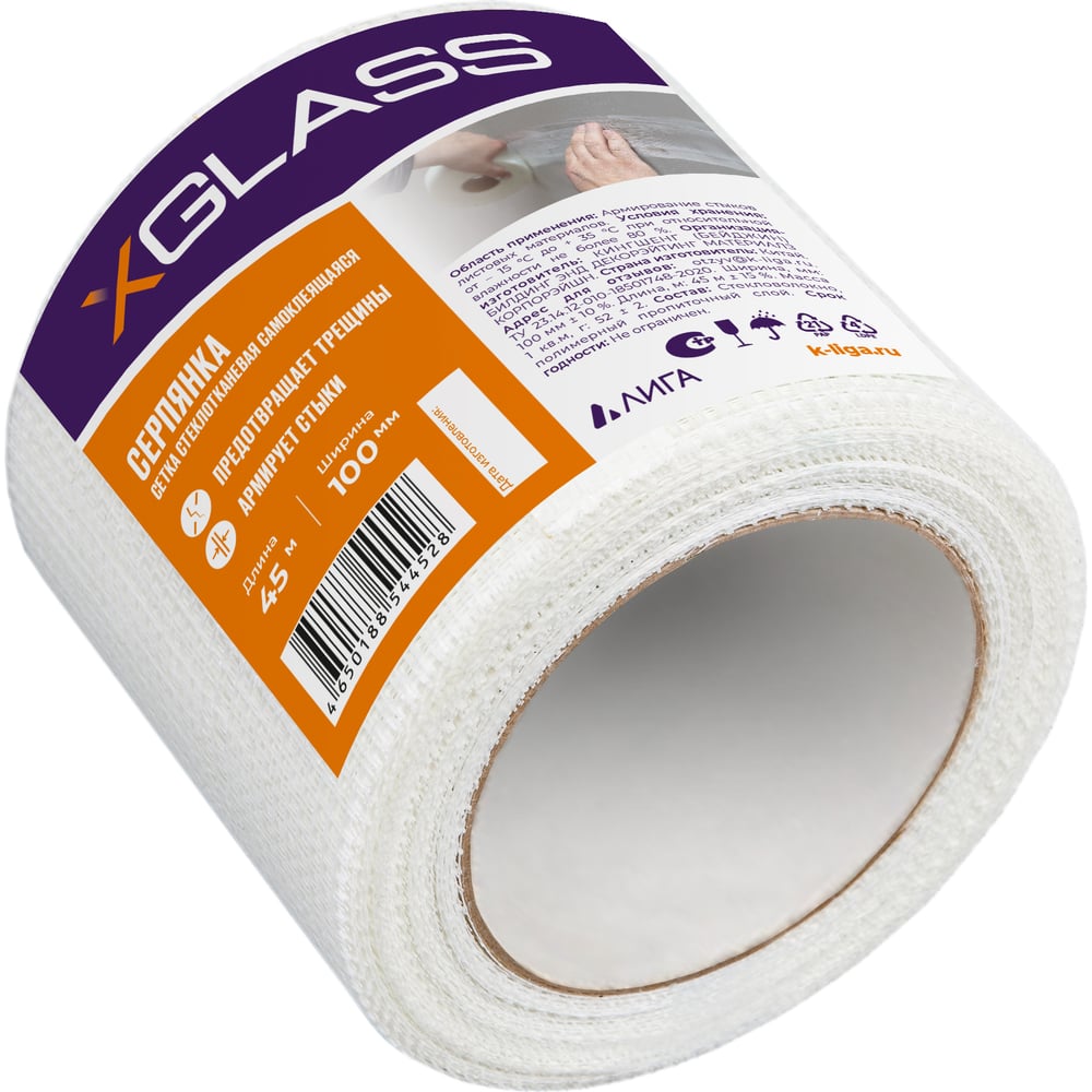 Лента серпянка стеклотканевая самоклеящаяся X-Glass Pro 100 мм х 45 м 220070