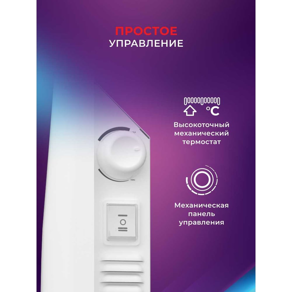 Габариты без упаковки 460х400х83 мм Высота 400 мм Ширина 460 мм Цвет белый Вес нетто 2.6 кг Материал корпуса металл Вид крепления настенный/напольный Серия RIBERA ECONO Степень защиты IP20 Напряжение 220 В Глубина 83 мм Световая индикация нет Заземление есть Дисплей нет Рекомендуемая площадь 10 м² Max мощность 1 кВт Наличие сетевой вилки есть Поддержка Wi-fi нет Защита от перегрева да Встроенный вентилятор нет Инверторная технология нет Вид термостата механический Ножки в комплекте есть Тип нагревательного элемента стич (игольчатый, лентообразный) Длина шнура 1.5 м Количество режимов мощности 2 шт Для системы Умный дом нет Ступени мощности 1 кВт Пульт ДУ в комплекте нет Антизамерзание да