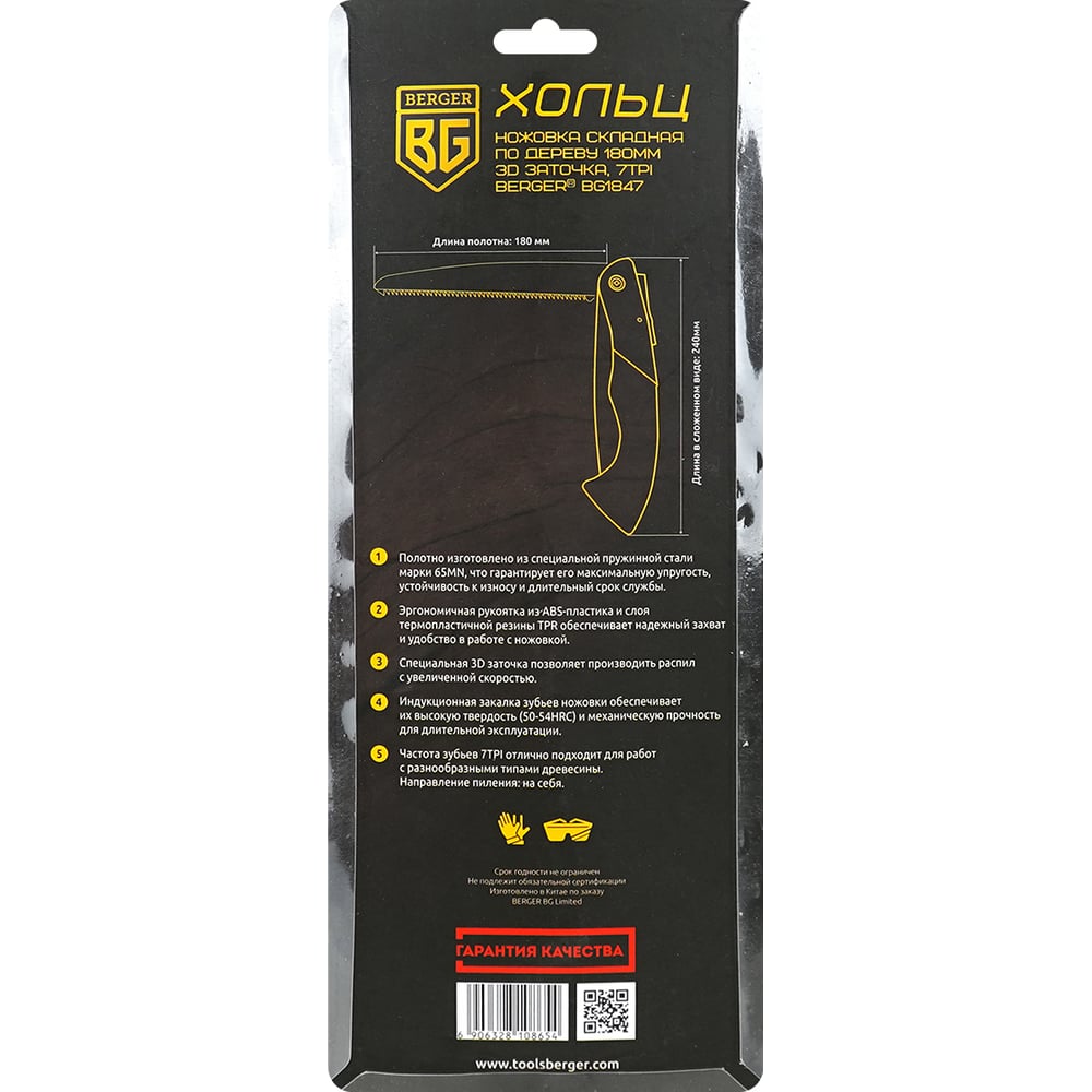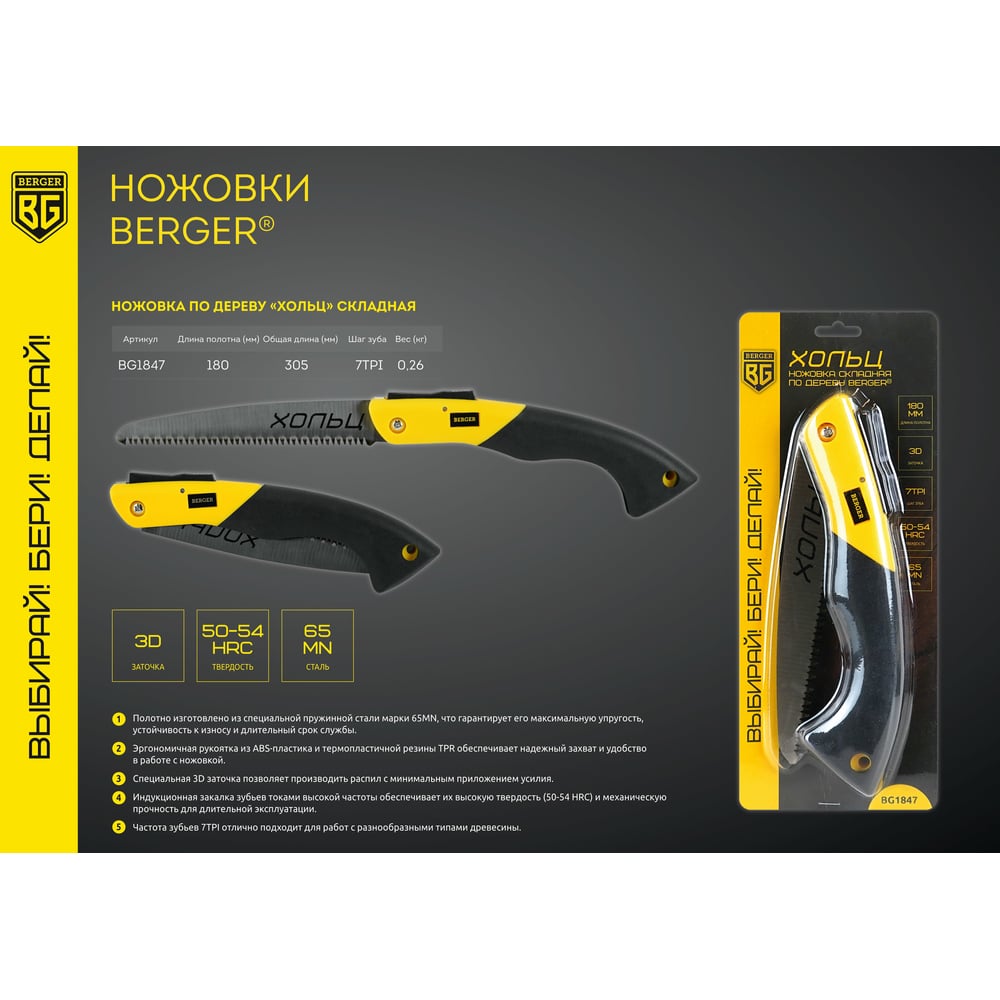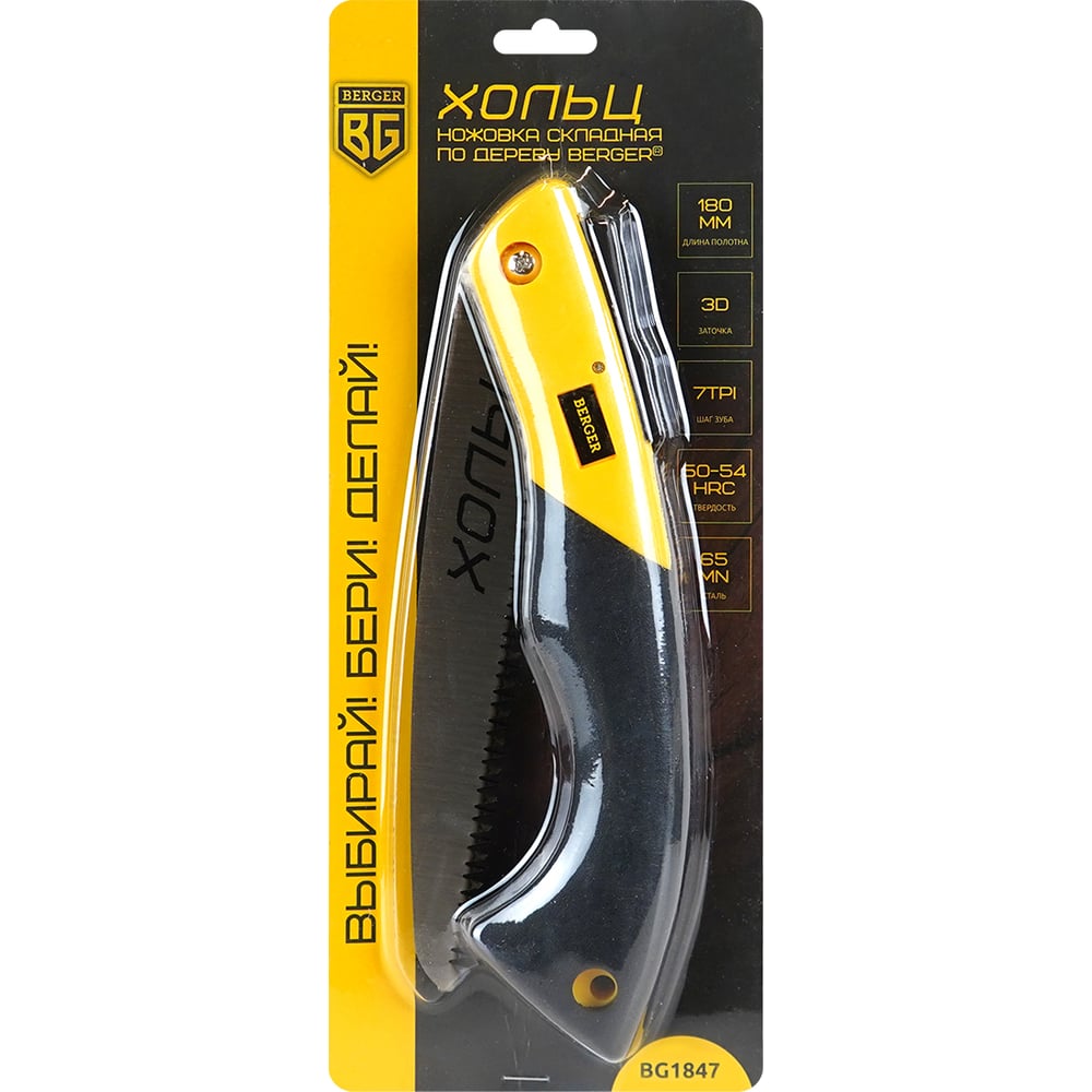 Складная ножовка по дереву Berger BG 180мм, 3D заточка, 7TPI,BG1847